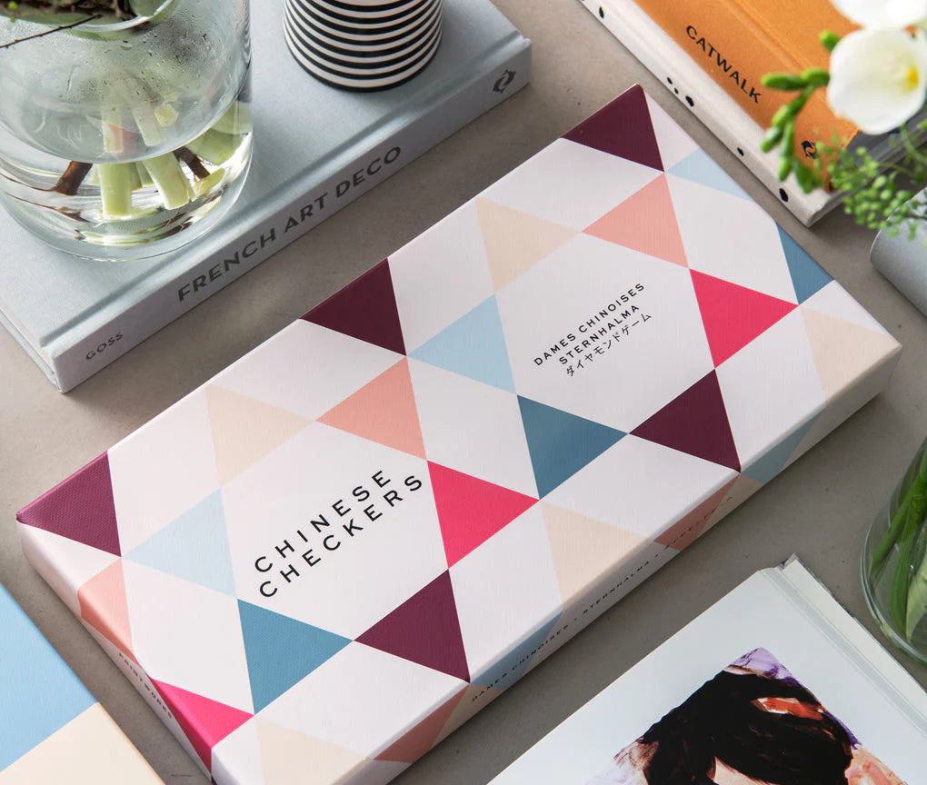 Our Play - Chinese Checkers, features a modern twist on the world-famous game. With a beautiful design, this set looks equally impressive, played or displayed. It includes a foldable cardboard board, colored marbles as playing pieces, and a stylish box that elevates any home.