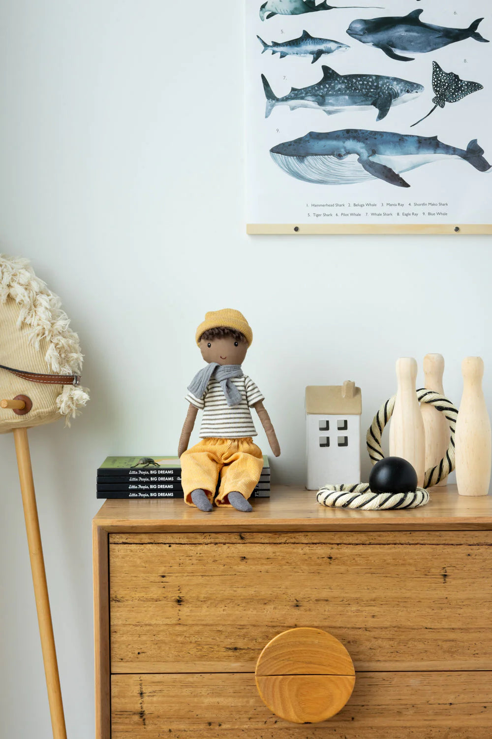 The only vegan dairy farmer you'll ever meet, Master Albert secretly wishes he was farming honey in Byron Bay! Cuddly & adorably unique, this handsome lad in his striped tee likes reading science fiction novels, playing chess with his older brother Jack & finding shapes in the clouds.