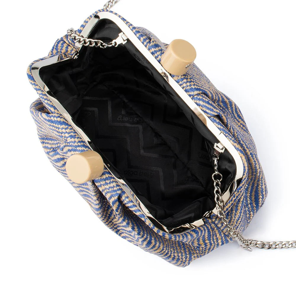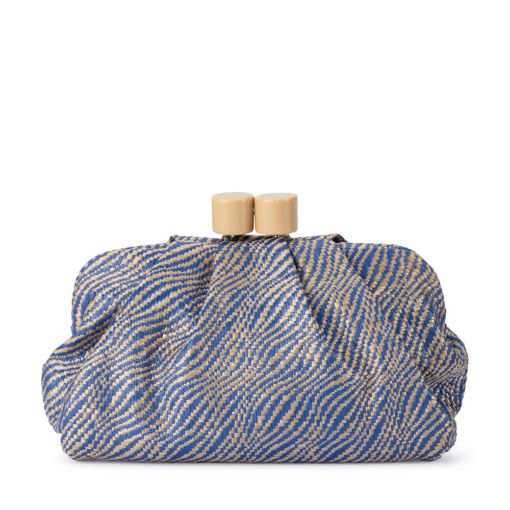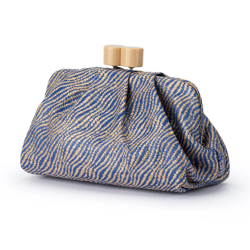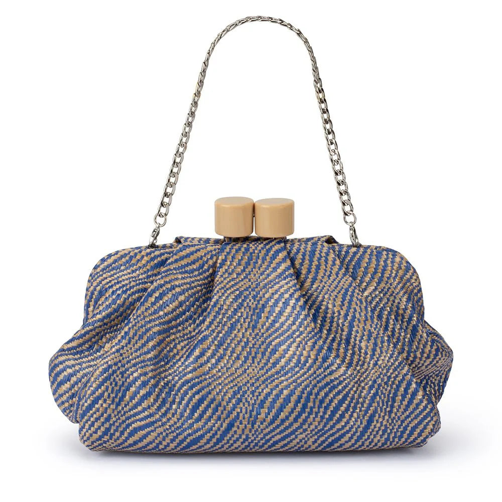 The ADDISON Woven Clutch showcases a beautiful textural fabrication that will add a touch of sophistication to any outfit. Perfect for both casual outings and special occasions, this spacious, acrylic kiss lock topped clutch combines elegance with a resort vibe, making it a versatile must-have bag. It also includes a chain handle and a long shoulder chain for multiple styling options.