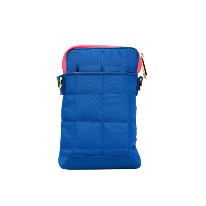 The Elms+King Baker Phone Bag has a top zipper and features a cotton webbing crossbody strap adjustable to 140cm. The Phone Bag features a rear mounted open top pocket, and the centre compartment opens to reveal an accent interior. Made from premium recycled quilted nylon with 14-karat light gold-plated hardware the Baker Phone Bag is the perfect bag for handsfree style.