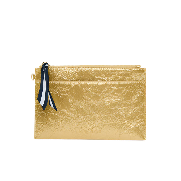The Elms and King New York Coin Purse is made from premium polyurethane, with slim line construction. The coin purse features a front open top, slip pocket with a hidden magnetic closure. The centre compartment has a top zipper closure with an accent ribbon zipper pull. Features Material: Made from premium polyurethane (PU) Closure: Top-zip closure Externals: Front pocket with magnetic closure Lining: Signature cotton navy & white gingham lining, Hardware: 14-karat light gold-plated hardware, accent ribbon zipper pull Height: 14cm Width: 21cm Depth: Flat Care All Elms+King bags come packaged in our signature dust cover for safe storage. When not in use, store your Elms+King bag in its dust cover out of direct sunlight. The premium PU material can be easily wiped down, using a warm, wet cloth and non-abrasive cleaning solution.