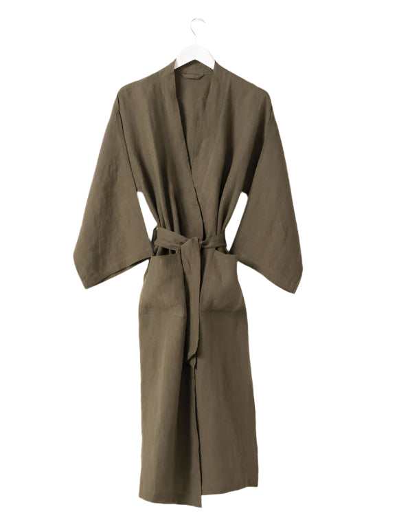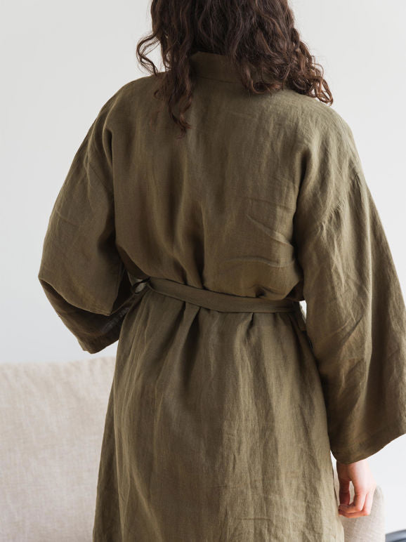 The robe has a relaxed fit with a belt that ties comfortably at the waist. Sizing information can be viewed in the product specification section below.