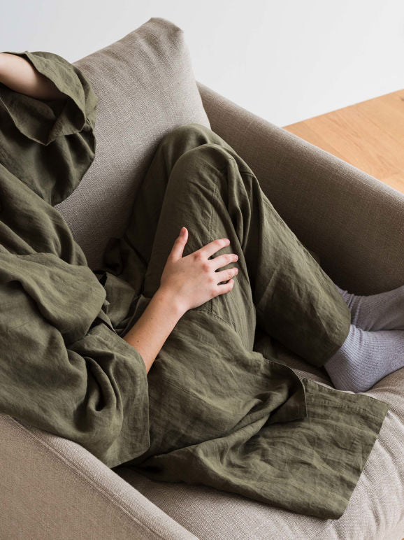 Relax at home in our 100% linen loungewear. Made from OEKO-TEX certified flax linen sourced from Belgium and France.
