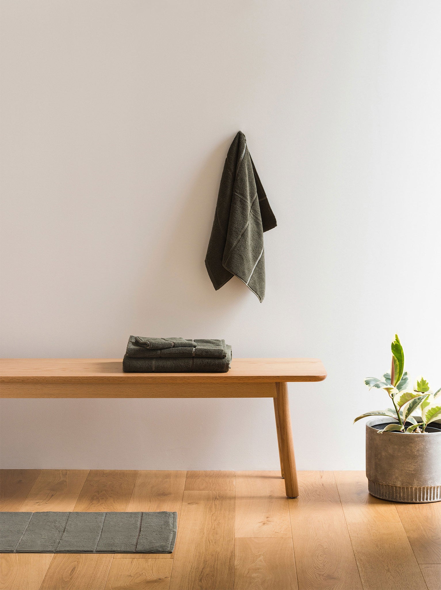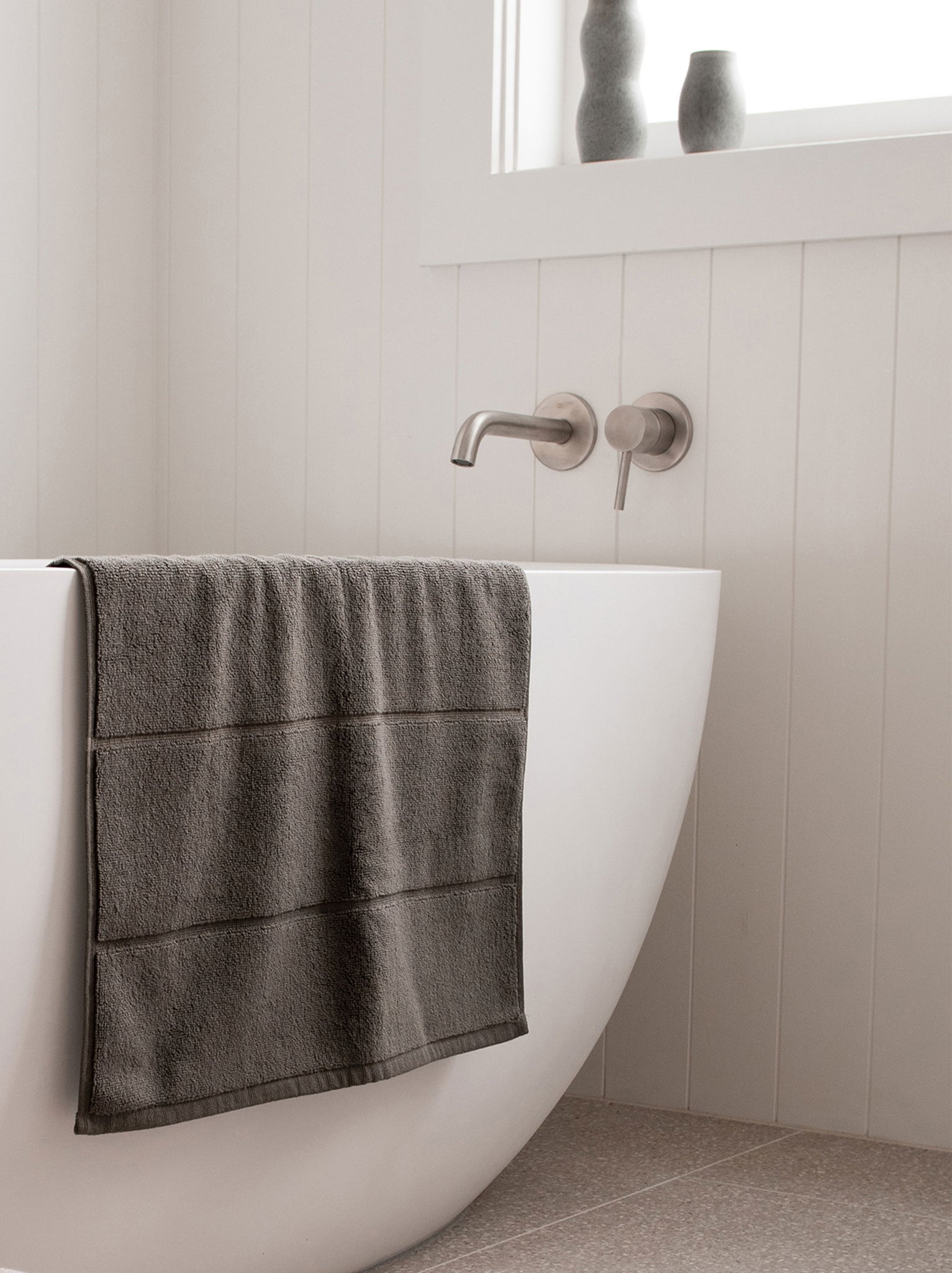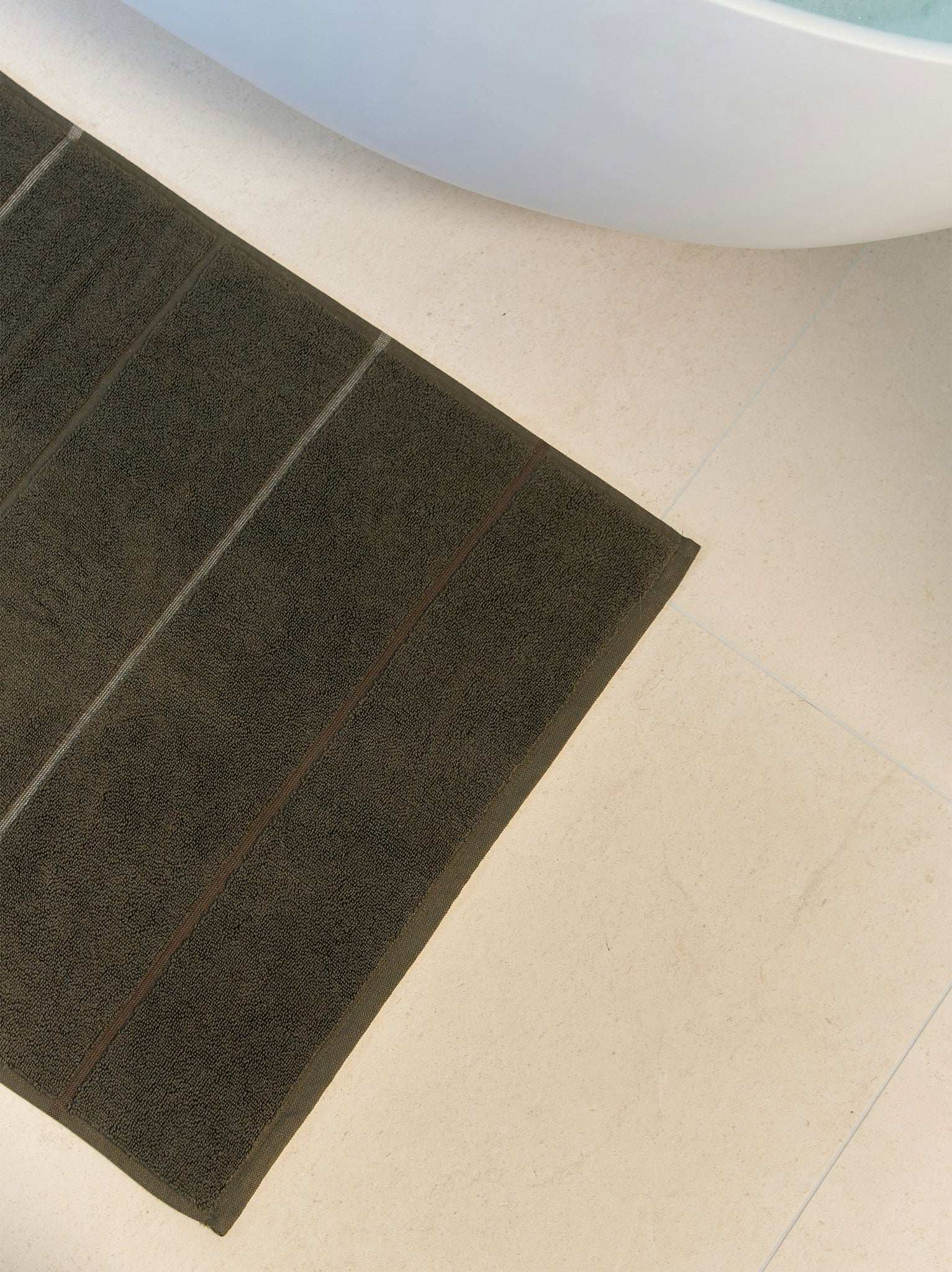 The Pia bath towel range adds a hint of soft colour to your bathroom. The subtly coloured flatweave stripe sits smooth while the body of the mat has an absorbent terry finish.