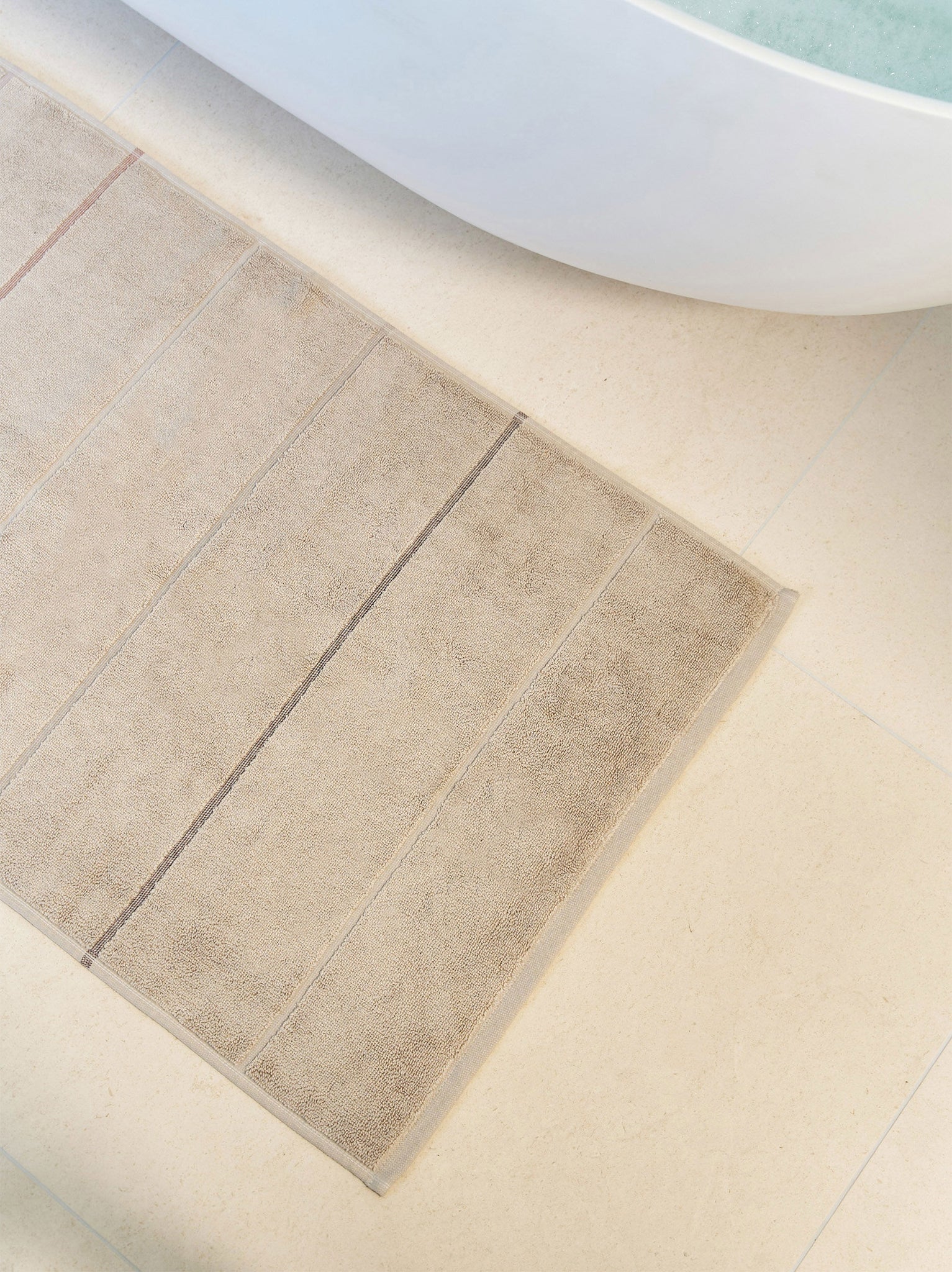 The Pia bath towel range adds a hint of soft colour to your bathroom. The subtly coloured flatweave stripe sits smooth while the body of the mat has an absorbent terry finish.