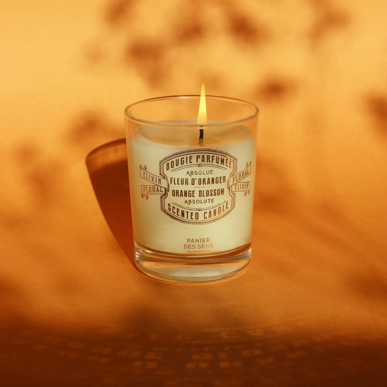 Glorious sunny notes of Orange Blossom are revealed in this uplifting scented candle from Panier des Sens. With each burn you will experience a memorable melange of mandarin, orange blossom, vanilla and tiare flower notes. Hand poured in France using a 100% cotton wick and high quality mineral and vegetable waxes. Exquisite provencal style packaging completes this home fragrance beauty!