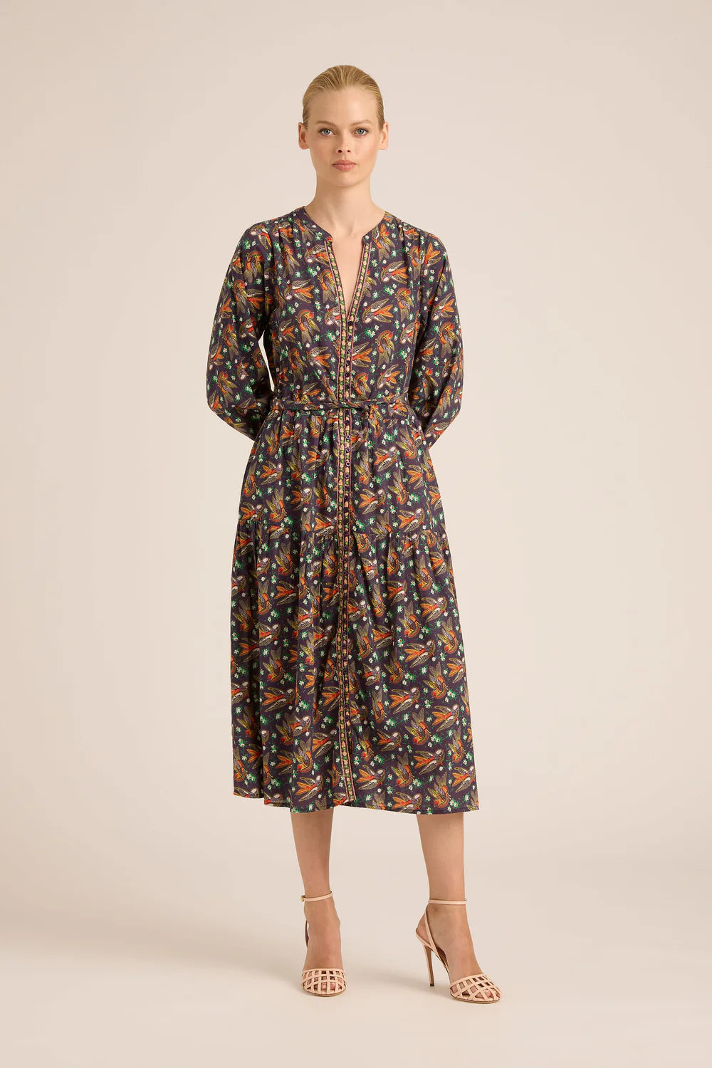 The original Lola Australia print is vibrant and eye-catching, capturing the essence of the season. The V-neck and wrist length sleeves (that can be worn to elbow) add a touch of femininity, ensuring a flattering and comfortable fit. The button-up design from the neckline to the hem adds a classic and timeless element, allowing for easy wear.
