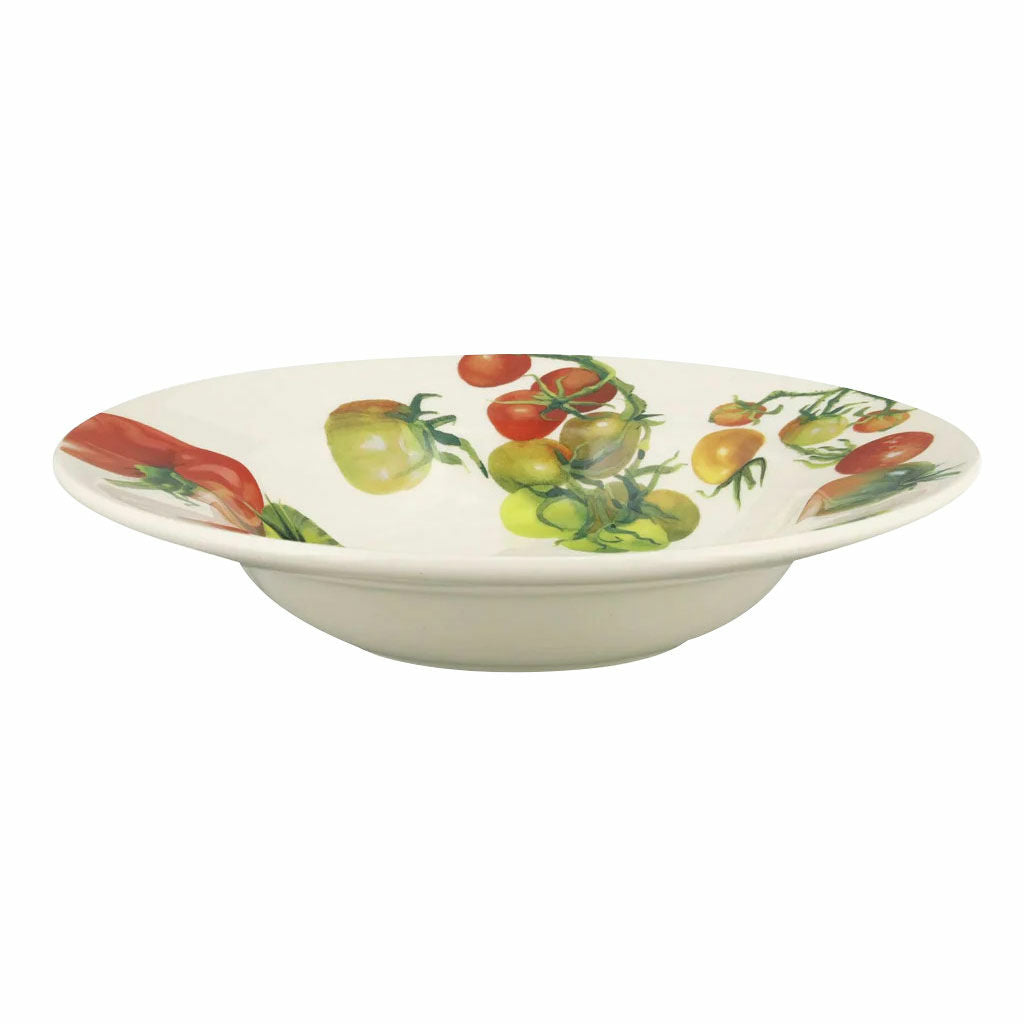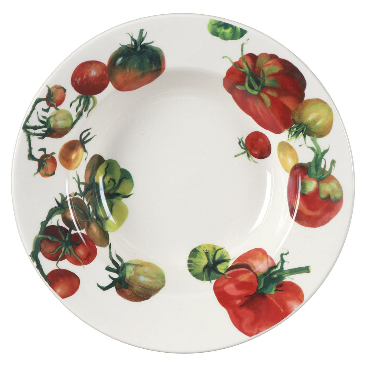 A part of the Vegetable Garden range from Emma Bridgewater, this bowl is adorned with stunning illustrations of tomatoes in vibrant reds and greens, complete with some still on the vine. The vegetable design is set upon a crisp cream background, creating a classic and elegant look suitable for any style kitchen. The dish features a large flat rim which is perfect for balancing bread or your spoon.