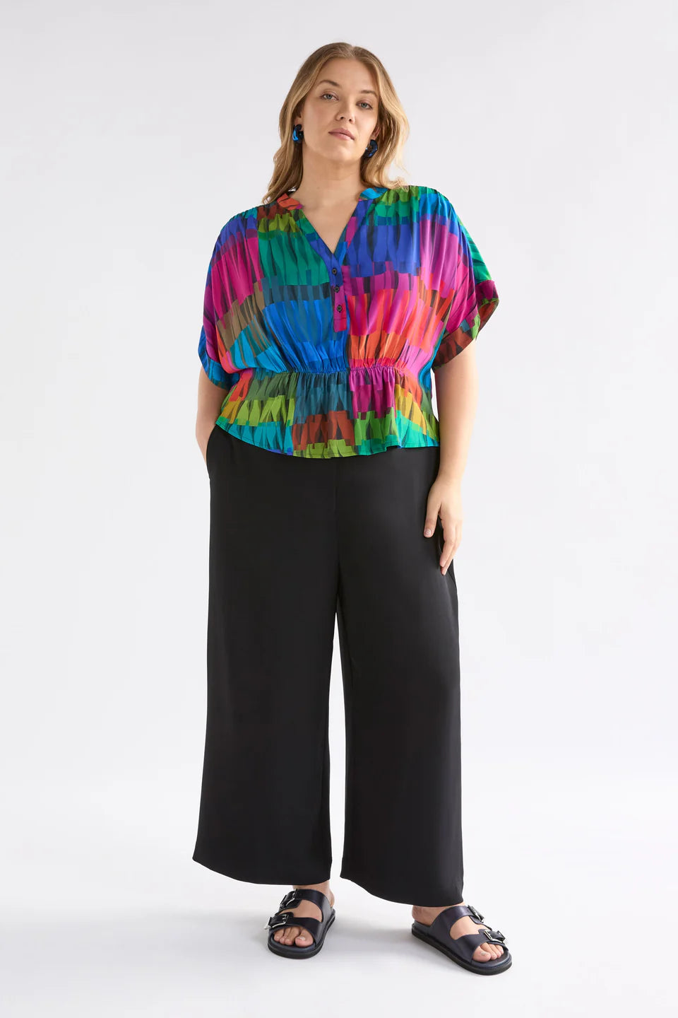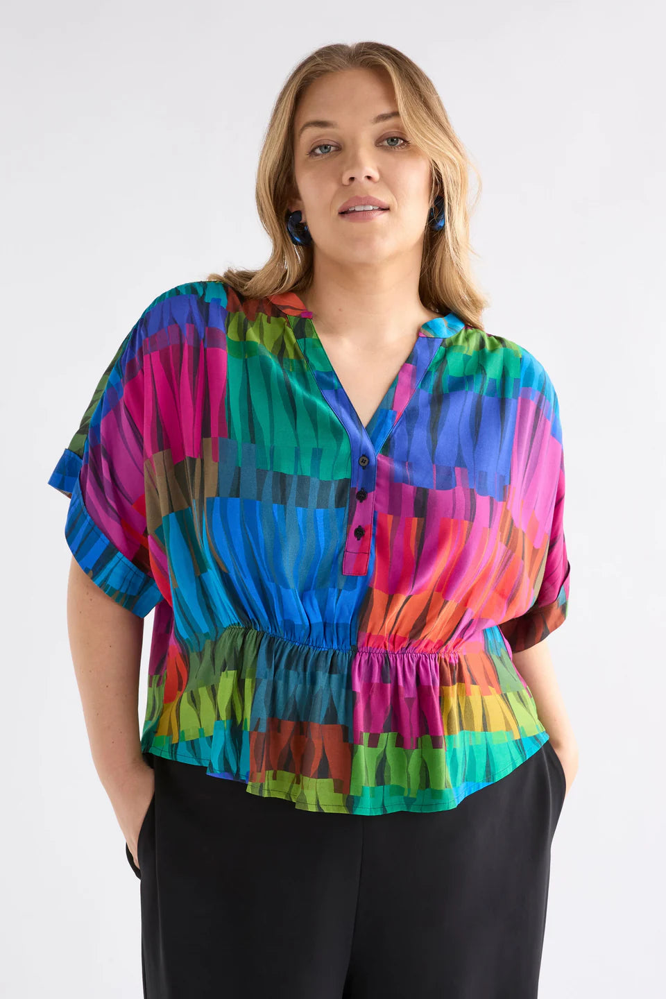 The Seka Top features the vibrant multi-coloured Lind Print in an easy, regular fit with slight waist definition from the soft gathers at front and back yoke. Crafted from a lightweight LENZING™ ECOVERO™ viscose blend with a fluid drape and subtle sheen. Style with high-waisted pants, shorts or flowing skirts for relaxed summer outfitting.