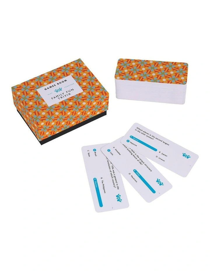 In a brightly coloured, portable box, these 140 general knowledge questions are an all-ages-friendly trivia challenge the whole family can enjoy together. With a range of topics, including pop culture, history, sports, nature, and more, it's a family game sure to unite generations for a whole lot of fun. With three optional difficulty levels, these multiple-choice questions are great for players of all ages. Perfect for anyone in search of birthday presents, game night inspiration, or stocking stuffers for the whole family.
