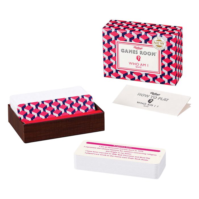 Guess the celebrity using the least amount of clues! Test your knowledge of the famous and the fantastical in this fun quiz game! Includes 140 multiple choice question cards Featuring personalities from Angelina Jolie to Zooey Deschanel Perfect for social gatherings, parties, and family nights Cards are stored in a durable cardboard box Measures3.