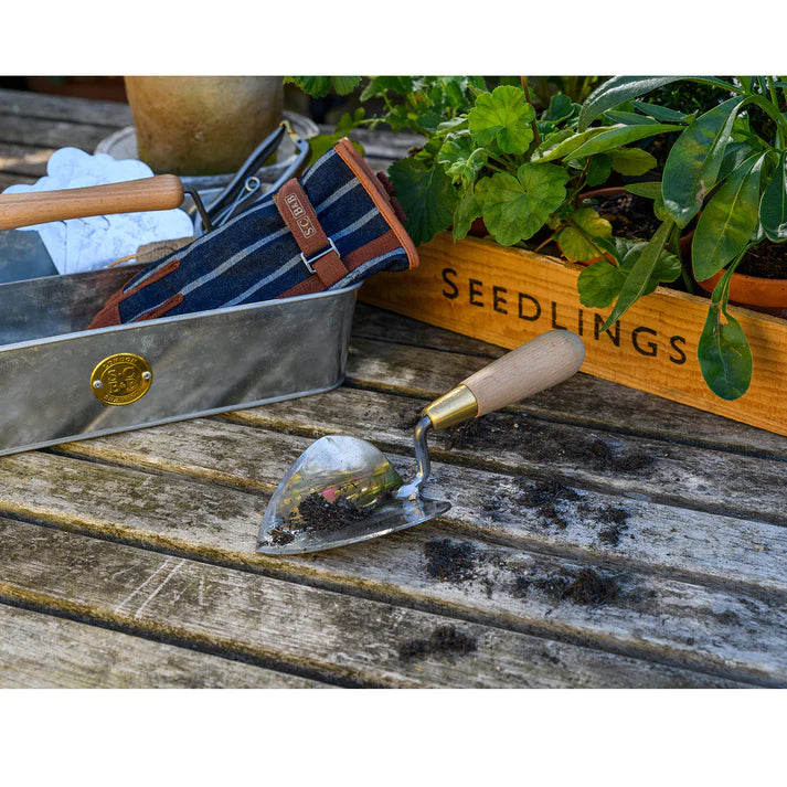 The versatile heart-shaped trowel has been created to be ideal for planting. It’s extremely useful for shallower digging and scooping, when planting bulbs, bedding, or plug plants. The wide head moves soil quickly and easily, and the pointed sharpened tip slices smoothly through ground. The ergonomic design gives the gardener more digging power, since the head is in line with handle, rather than angled. This trowel’s small size makes it especially ideal for container gardening.
