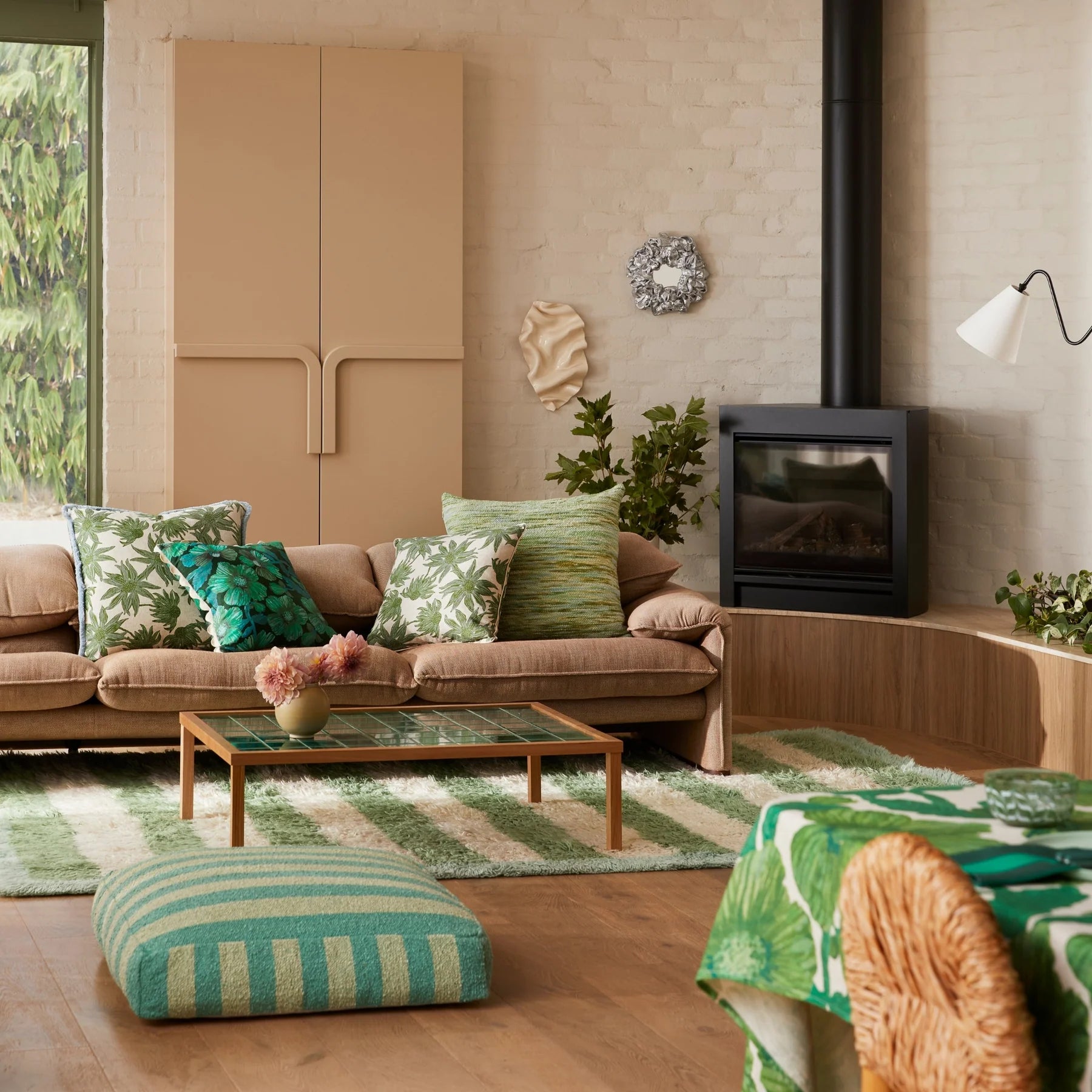 Grounded in nature, our Flannel Flower Khaki cushion brings an earthy sophistication to your living room. These hand painted florals inspired by traditional printmaking techniques, create a subtle yet impactful textural contrast, celebrating the beauty of organic forms with a structured aesthetic. This khaki green floral cushion blends seamlessly into a range of interiors, from modern minimalism to rustic charm. Layer with emerald, forest green and textured cushions for a tonal, nature-inspired palette.
