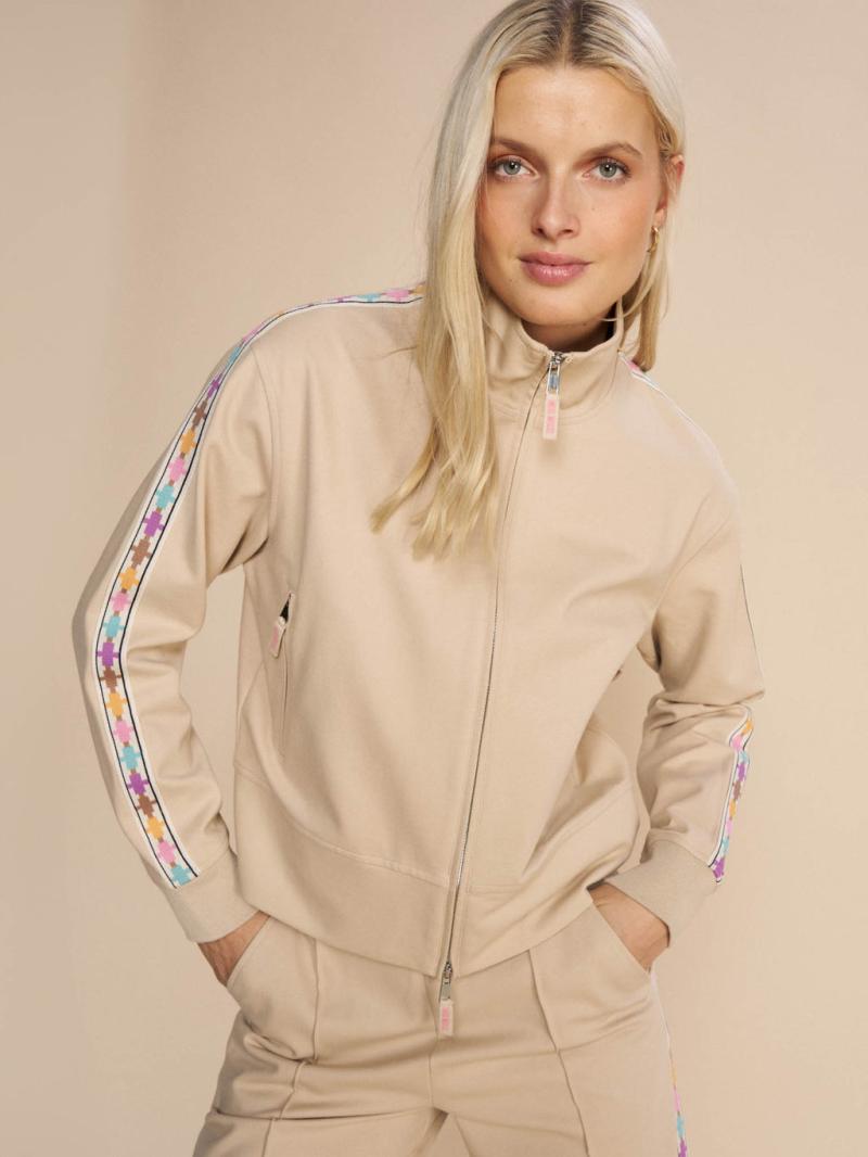 You will love this soft and cozy sweatshirt! Made from a luxurious cotton blend, it's really comfortable to wear. It is designed in a regular silhouette with a zip fastening, a high neck, ribbed cuffs and a nice contrasting stripe on the sleeves as a smart finish. Use it together with our matching sweatpants for a sporty and coordinated look - with plenty of comfort.