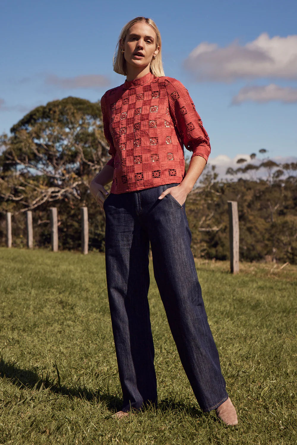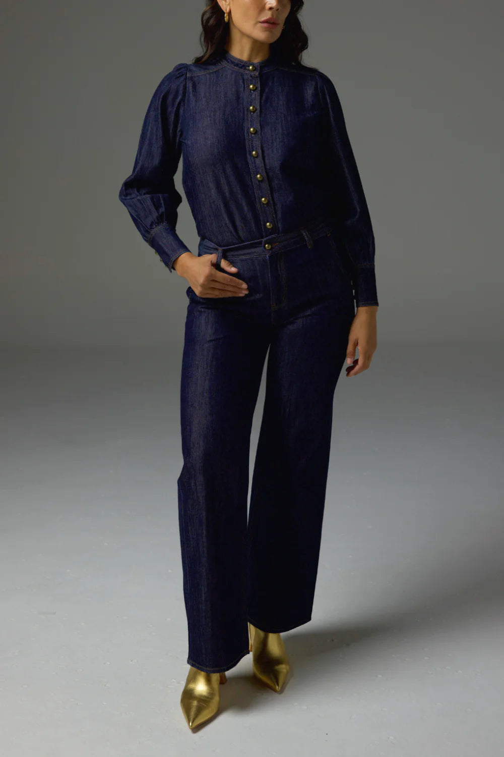 embracing fall’s penchant for refined structure. This hybrid jean-pant brings a flattering high waist and soft flattering proportions through its wide leg, whilst maintaining a relaxed elegance.