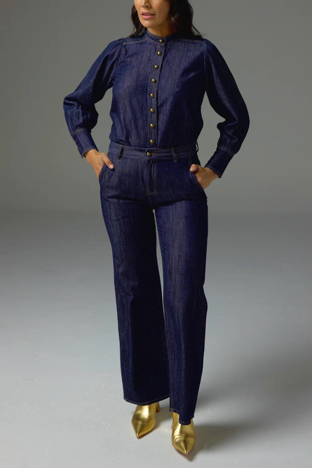 Effortlessly pairs with matching dark denim pieces.