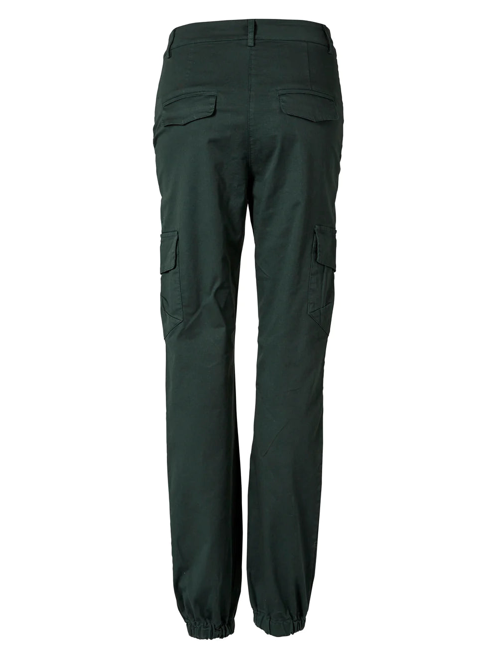 everyday look. The trousers are made from a comfortable and slightly stretchy cotton mix. They have pockets on the side and elastic at the ankles. These trousers are versatile and can be styled with anything from a simple t-shirt to a trendy knit blouse.