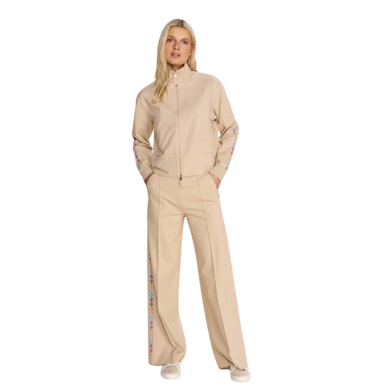 These soft sweatpants are an absolute dream, crafted from a luxurious cotton blend, and the relaxed fit with a high-rise ensures comfort without compromising on style. The elasticated waist and the chic contrast stripes at the side add a touch of flair. The perfect match awaits when you pair these sweatpants with the coordinating jacket (shown). You’ll achieve a sporty and effortlessly coordinated look that exudes confidence.