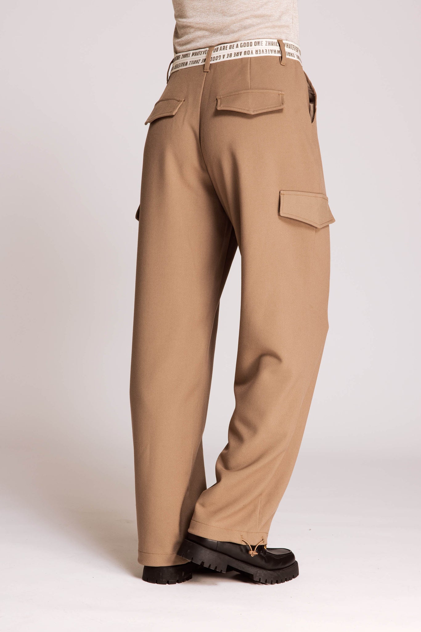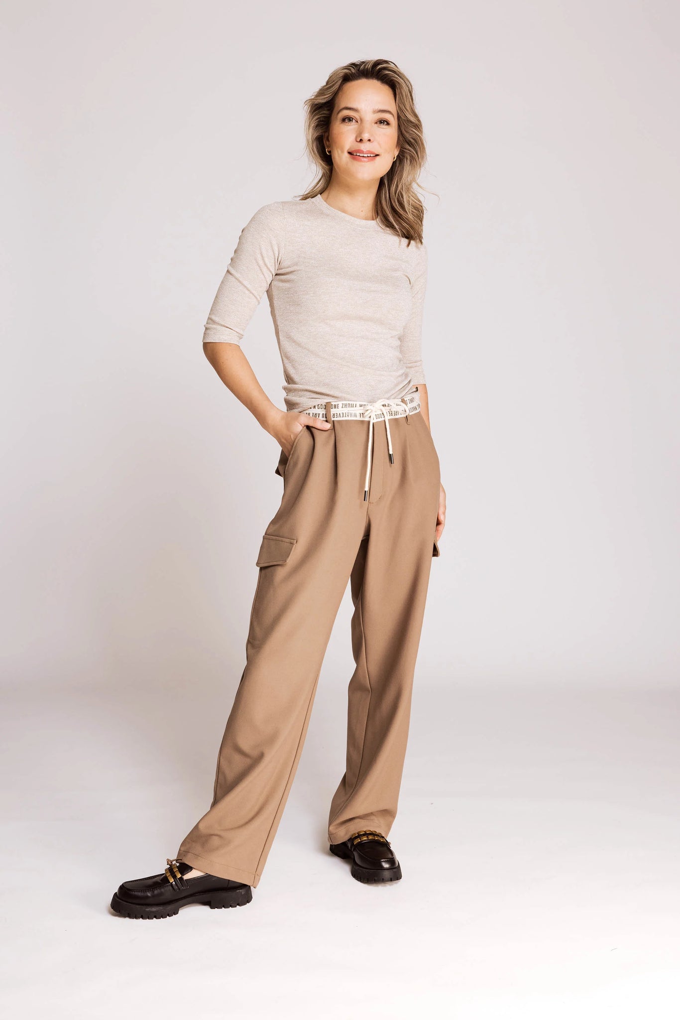 Details: Elastic waistband with integrated drawstring for an individual fit; decorative lettering on the waistband; patch cargo pockets on the sides for a casual look