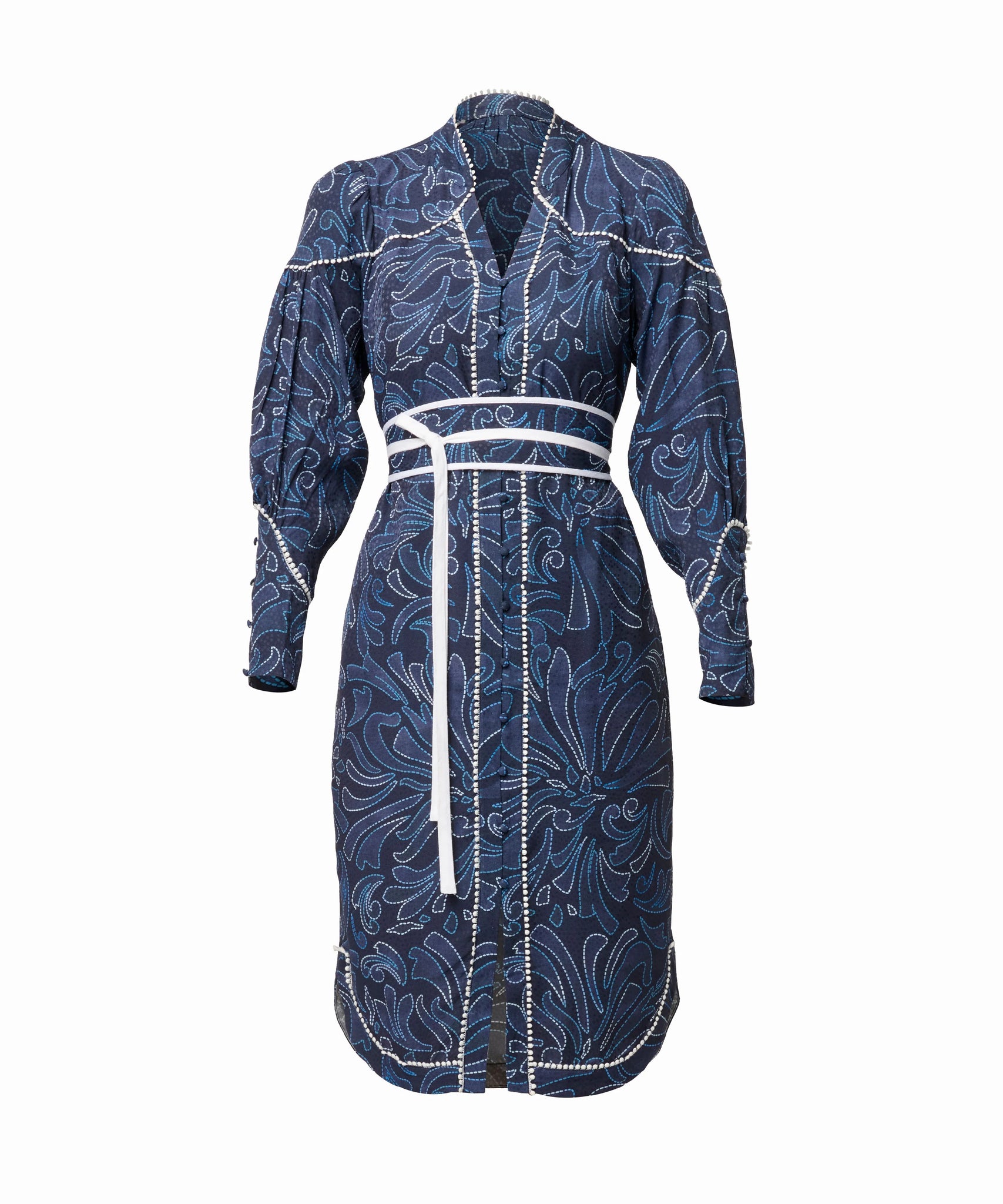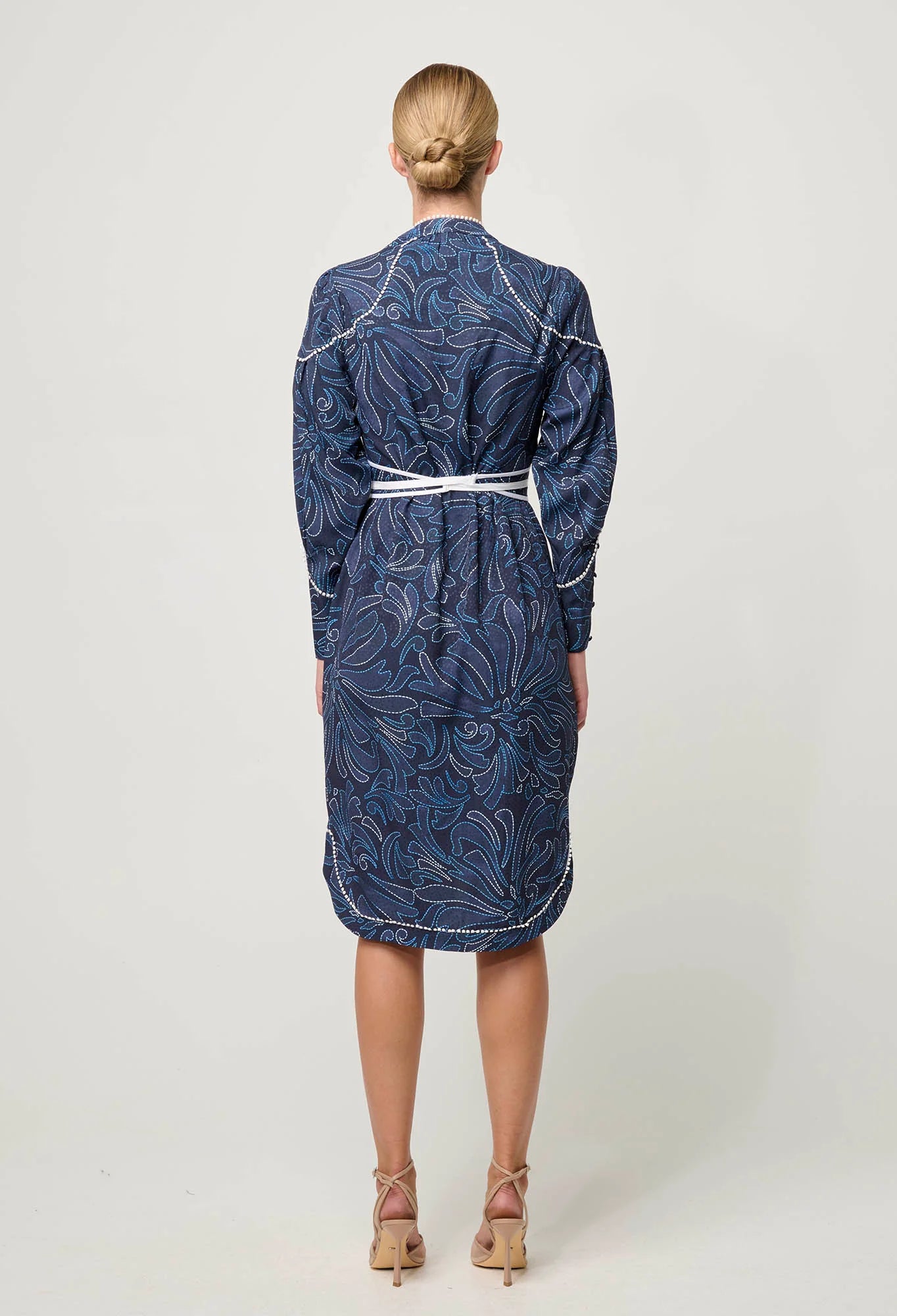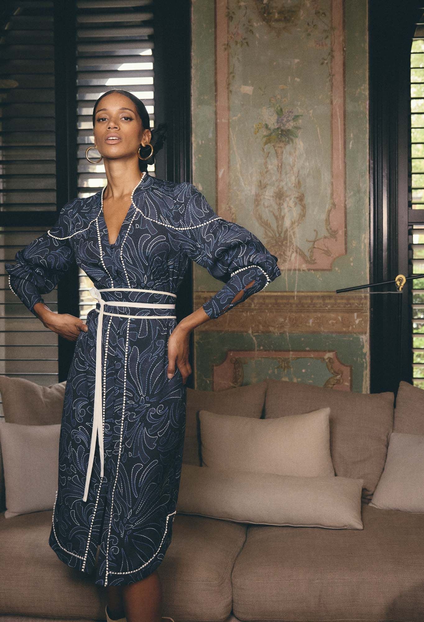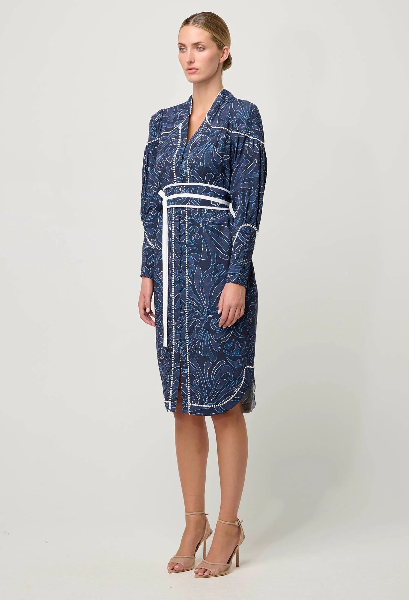 Unveil timeless elegance with the Adela Viscose Dobby Dress in Altamira. Designed for sophisticated movement and effortless femininity, this striking dress blends modern detailing with vintage charm.