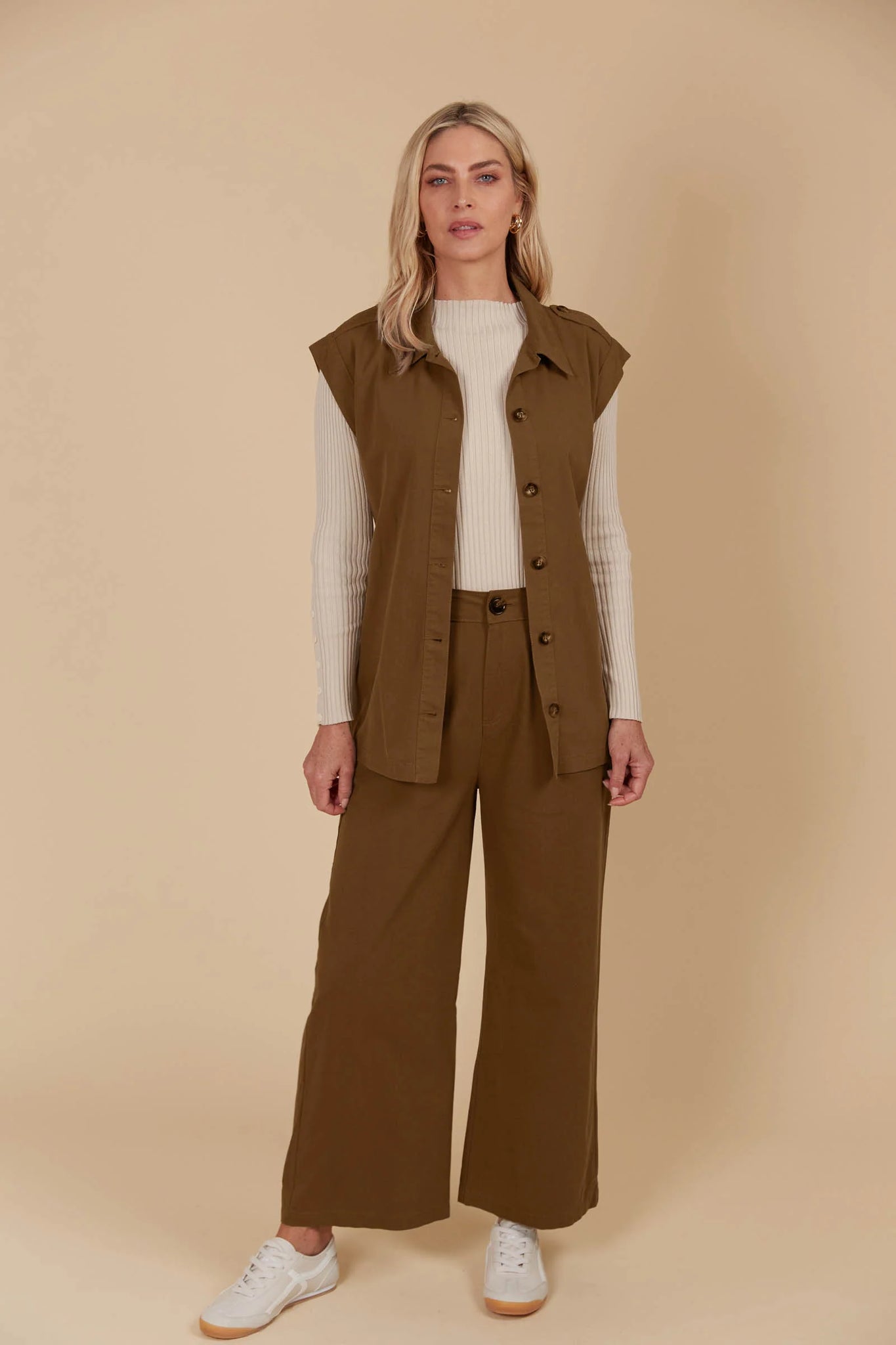 Bold yet sophisticated, the Freya Vest redefines seasonal layering with its premium cotton-blend construction and striking design. The full button-down front is complemented by a sharp collar, cap sleeves, and a removable self-fabric belt, offering a tailored silhouette when desired. Whether left open or cinched at the waist, this vest adds a polished finish to any neutral ensemble.