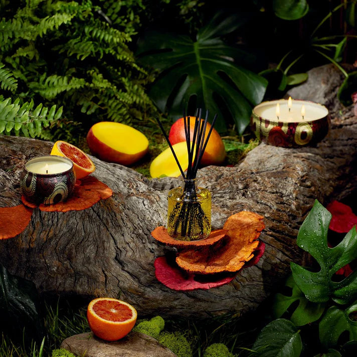 VOLUSPA'S Goji & Tarocco Orange is boldly thrilling. This vivid scent shakes ripe mango and bittersweet goji berries wide awake, while resting on a bed of tangy blood orange. Arousing the senses with tart tangerine and piquant pomelo nectar, the freshly squeezed and exhilarating aromatic instantly lifts the spirits and adds vibrant shine to the day.