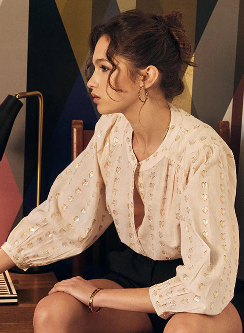 Back by popular demand, our classic Ines shape with silver & gold lurex hearts woven into lightweight cotton voile. A cool & loose fitting style that can be dressed up or down & never fails to sparkle!