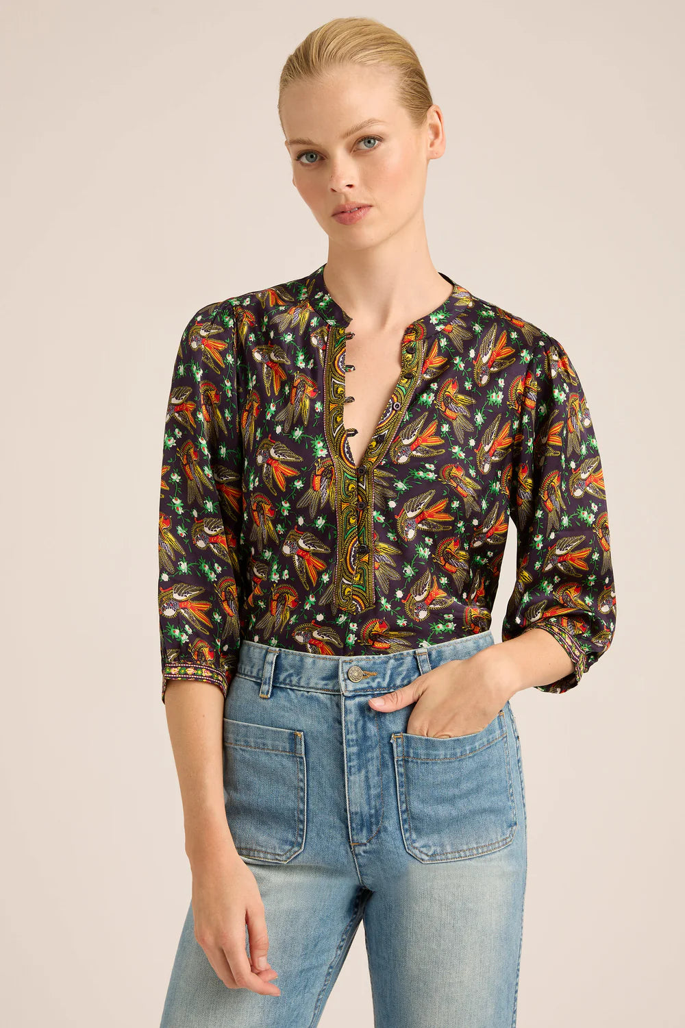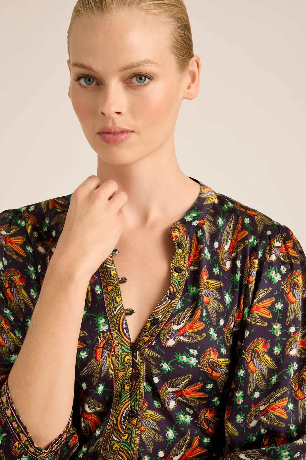 The Scarlett Shirt features sleeves that gracefully extend below the elbows, striking a perfect balance between coverage and sophistication. Its button-neck to hem closure adds a touch of classic charm, allowing you to adjust the neckline to your preference while ensuring ease of wear. The elasticated cuff sleeves ensure a secure fit, providing comfort and freedom of movement, making this shirt suitable for any occasion.