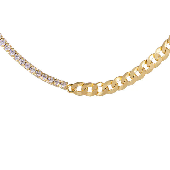 Master the casual luxe look with this gold chain / Cz-encrusted tennis necklace. Perfect for minimalists and bold dressers, this classic nostalgic piece will add glam to any outfit.