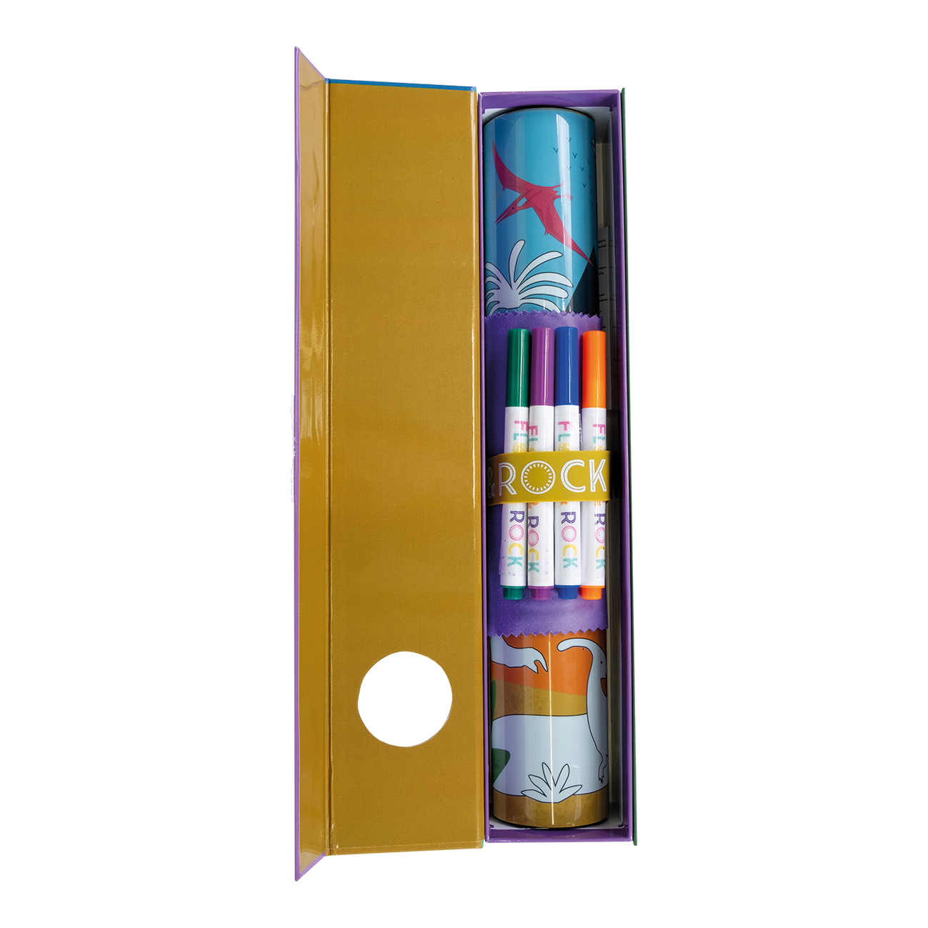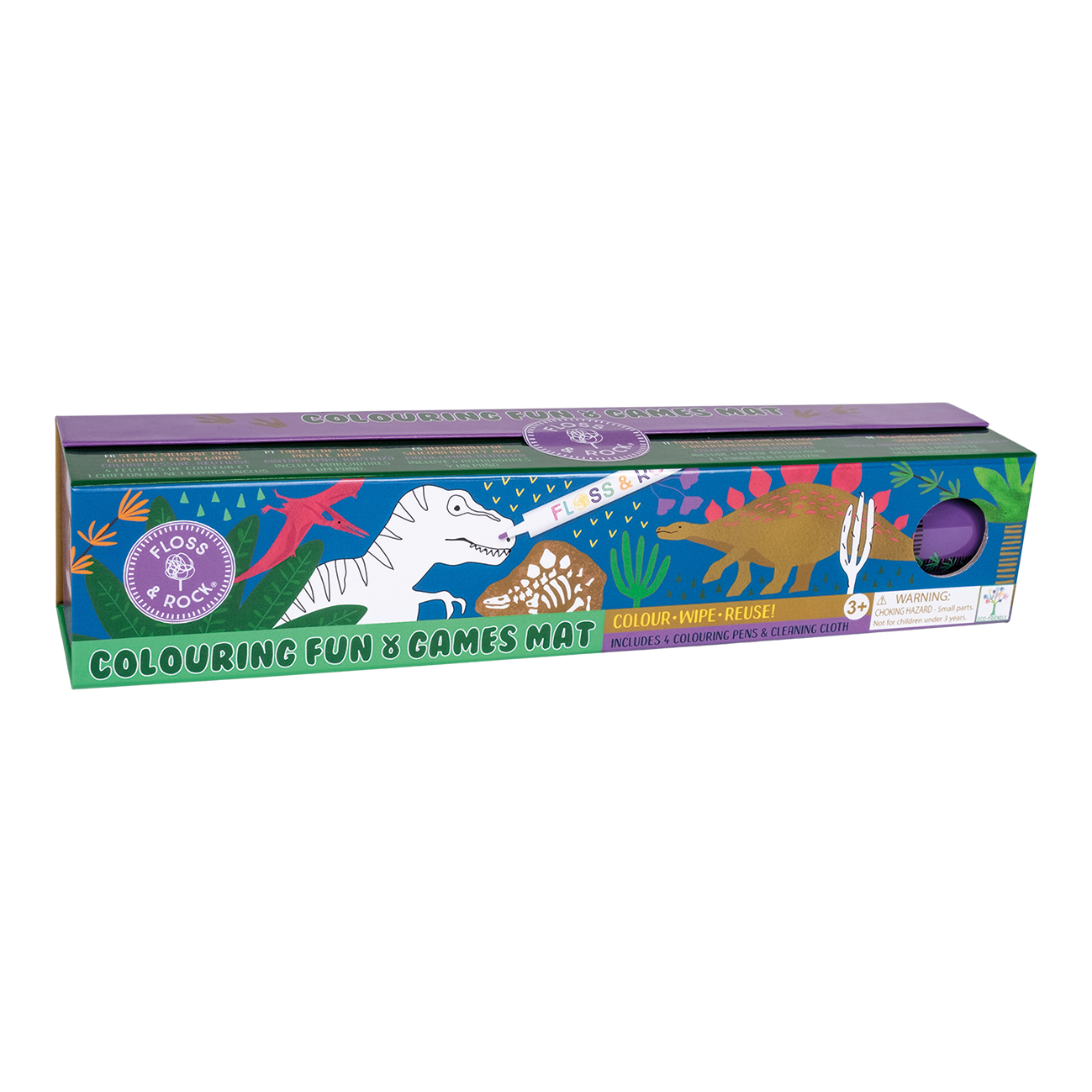 Step back in time with the Floss & Rock Activity Mat Pack – Dinosaurs! This thrilling set includes a reusable activity mat featuring awesome dinosaur scenes, four vibrant colouring pens, and a convenient cleaning cloth. Perfect for kids aged 3 and up, this mat allows young dino enthusiasts to colour, wipe clean, and start the fun all over again. Made with eco-friendly materials, it offers a mess-free and sustainable way to inspire creativity. Whether at home or on the go, the dinosaur-themed activity mat provides limitless entertainment and sparks imaginative play.