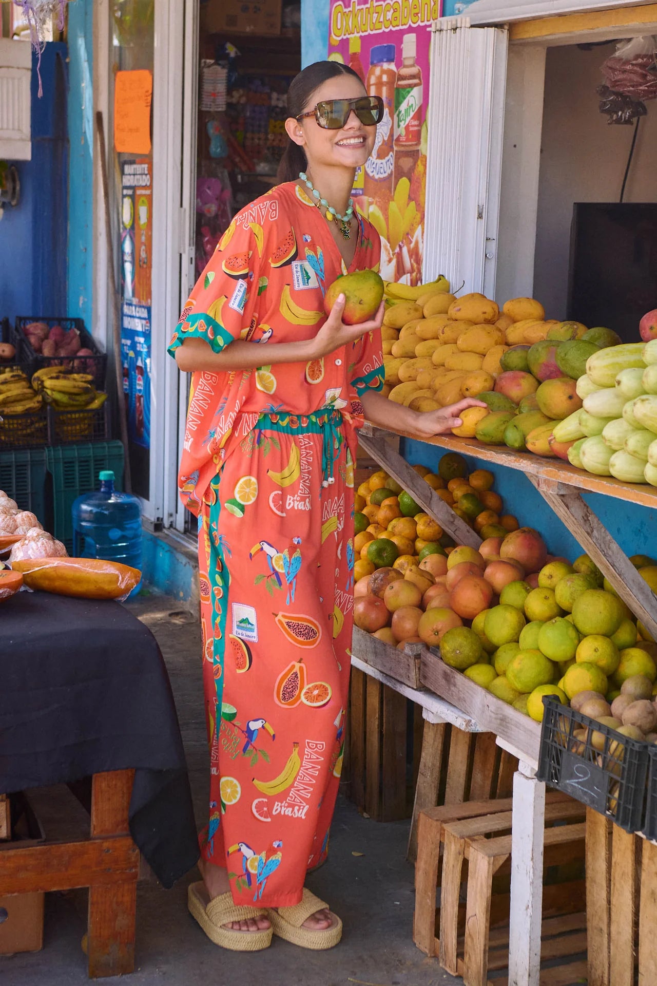 Bold print, ultra comfort. The Cabana Pant features a striking tropical print with a contrast side stripe and waistband for a fresh, summer-ready look. Designed in a relaxed wide-leg silhouette with full-length drape, and featuring an encased drawstring waistband with beaded ties allowing for an adjustable fit. Internal side pockets add everyday function.
