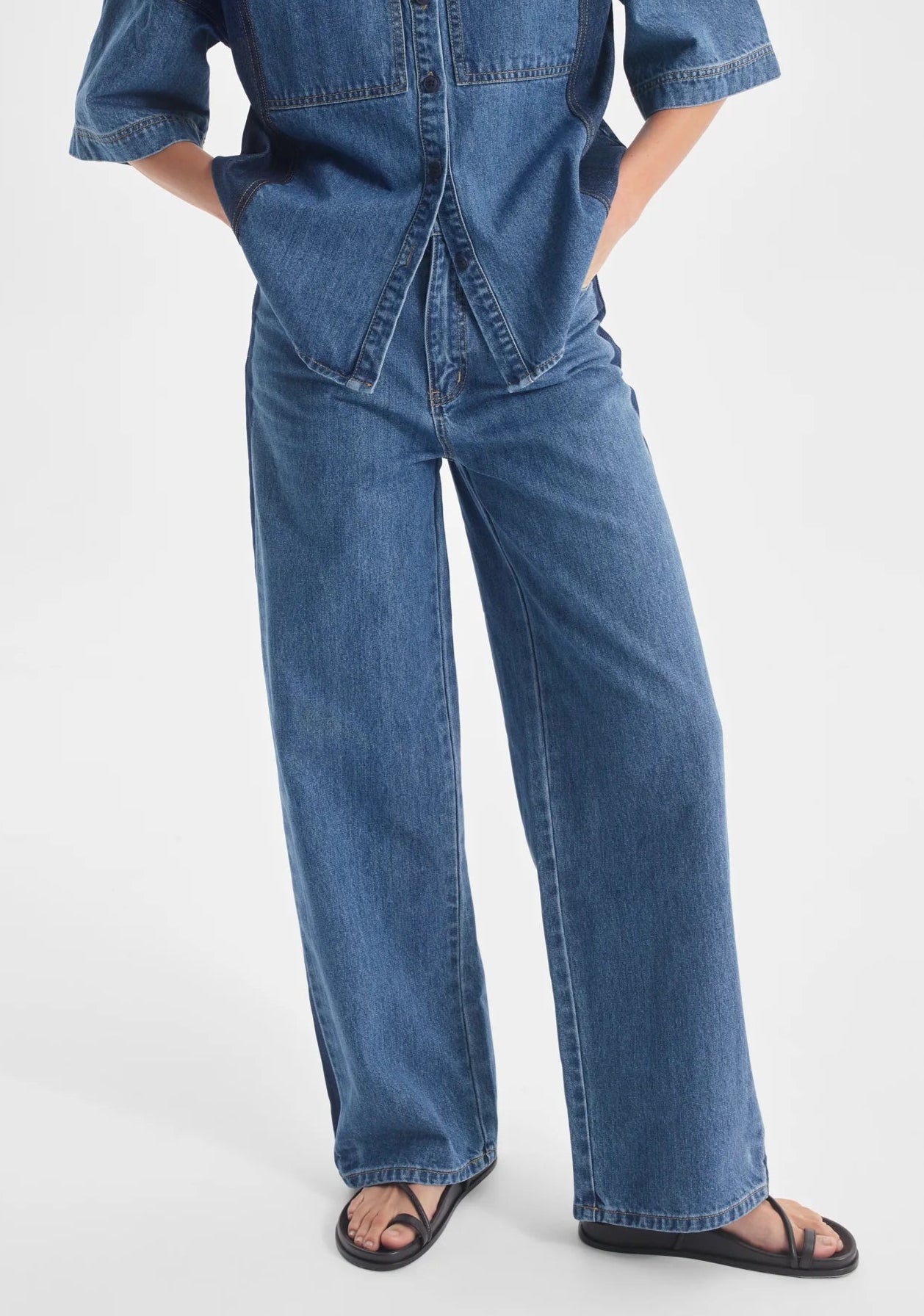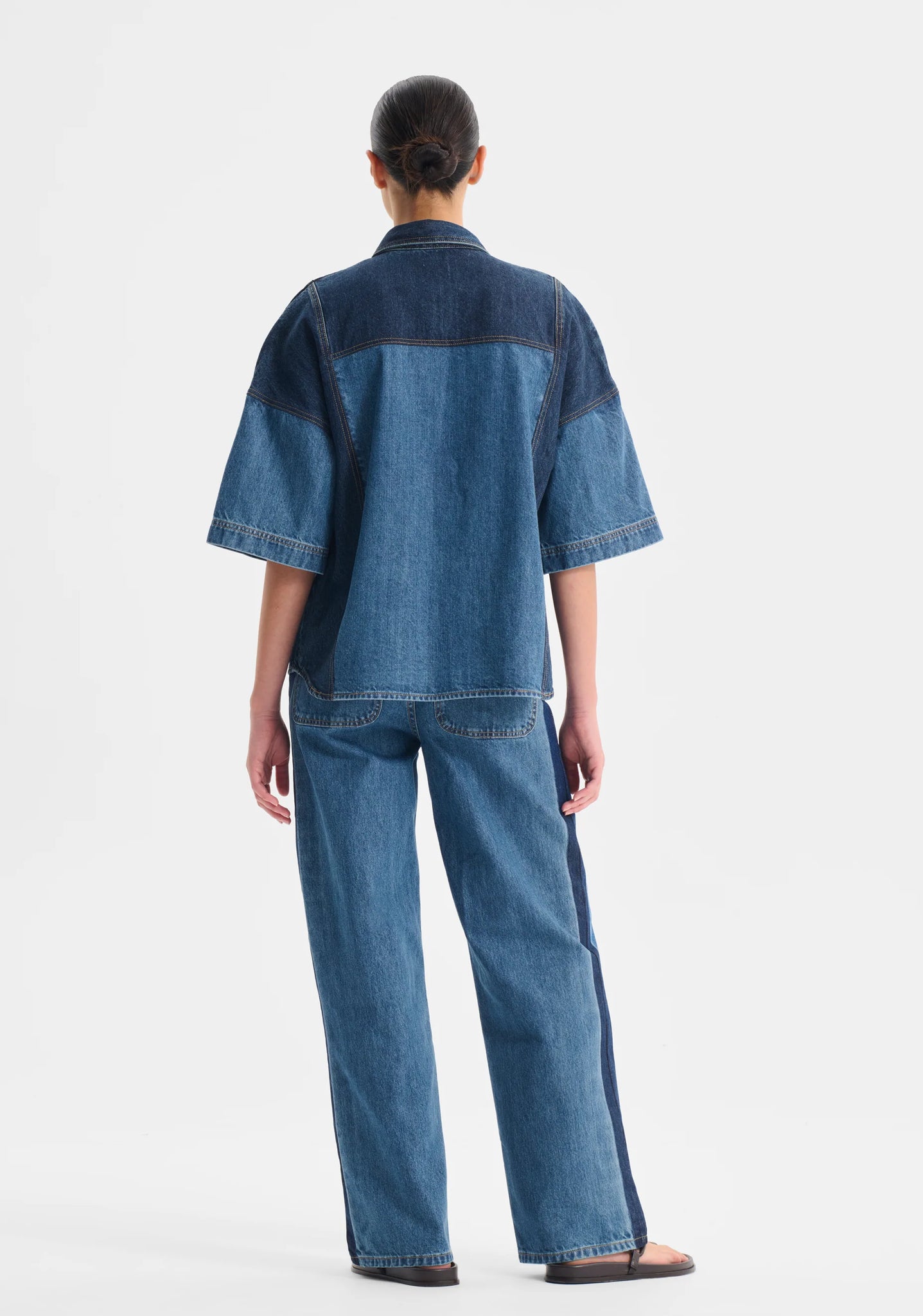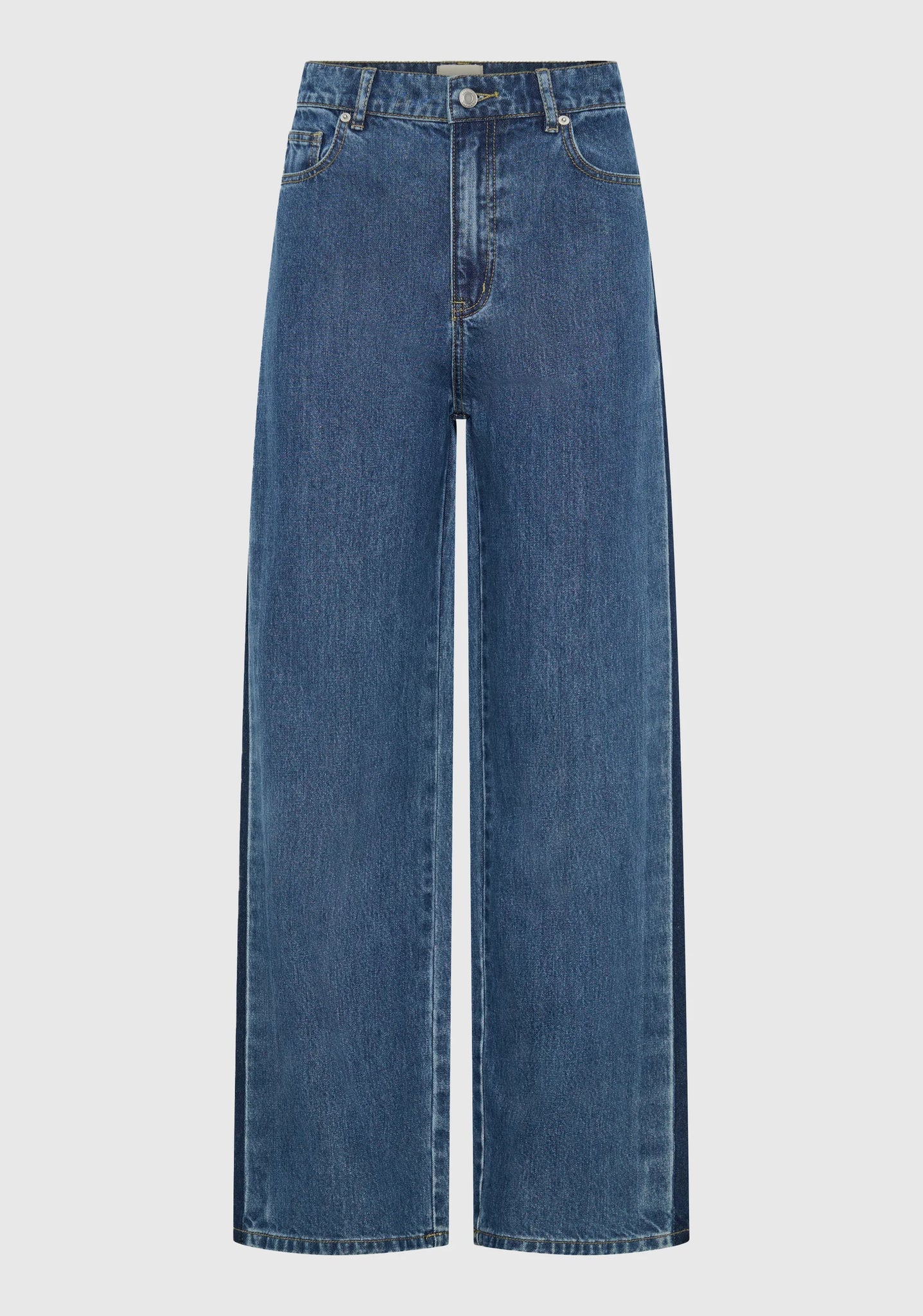 The Dexter Denim Jean is a modern wardrobe essential, crafted from mid-weight, two-tone cotton denim for a bold yet refined look. Designed with a flattering high-rise waist, straight-leg cut, and full-length silhouette, these jeans feature contrast side panels, classic five-pocket styling, and an adjustable back waist tab for a tailored fit.