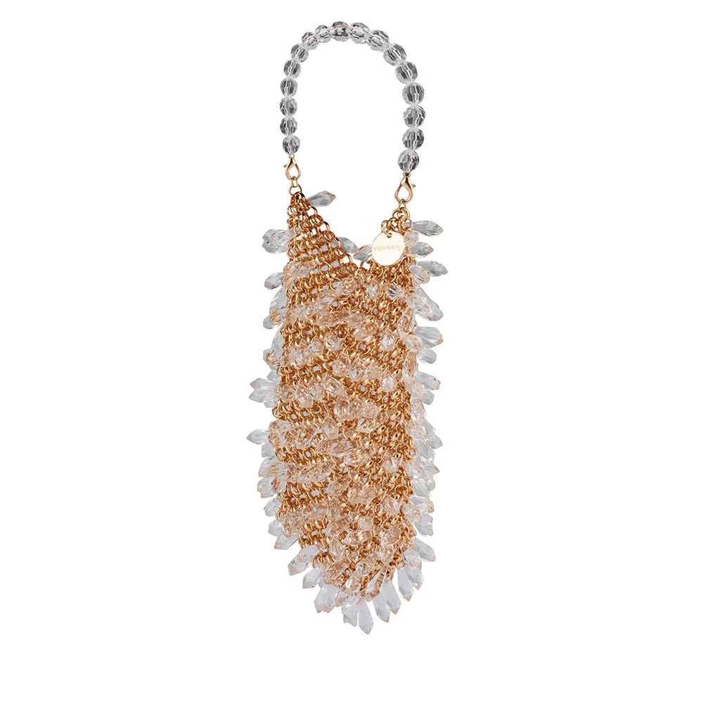 The FLORENCE Chainmail and crystal top handle bag is a showstopping evening bag. Turn heads with this sparkling slouch style chainmail bag, which features all-over shimmering crystals. Easily fits a large smart phone and includes a shoulder chain as well as a matching crystal handle for versatile styling options.