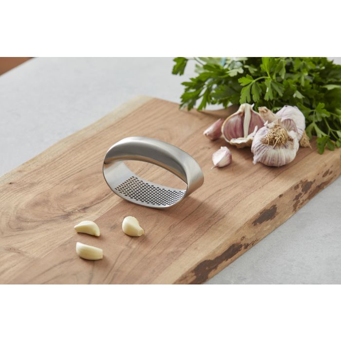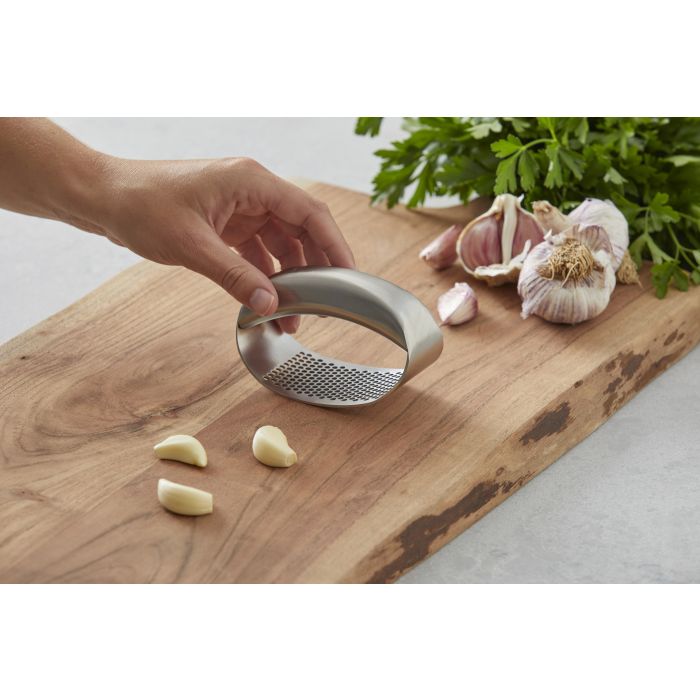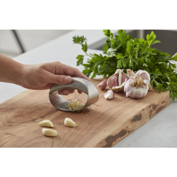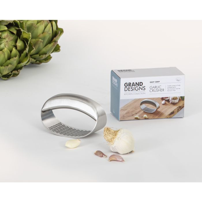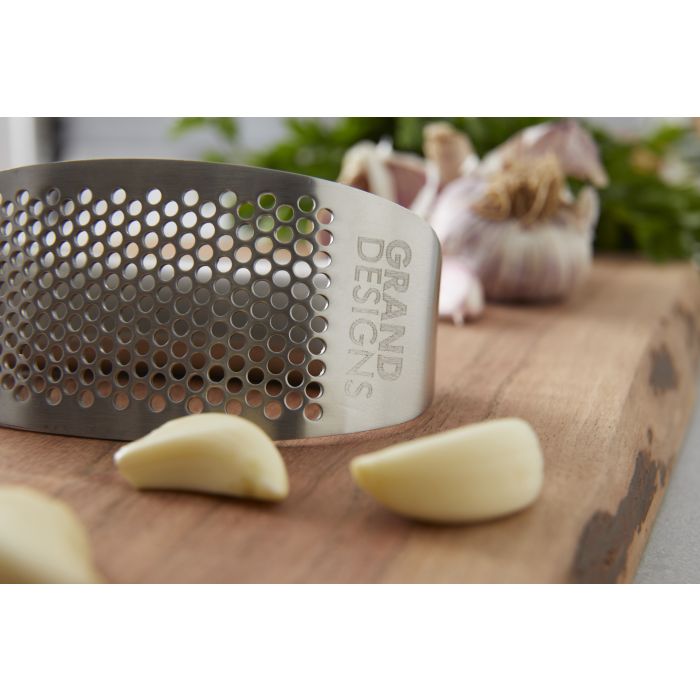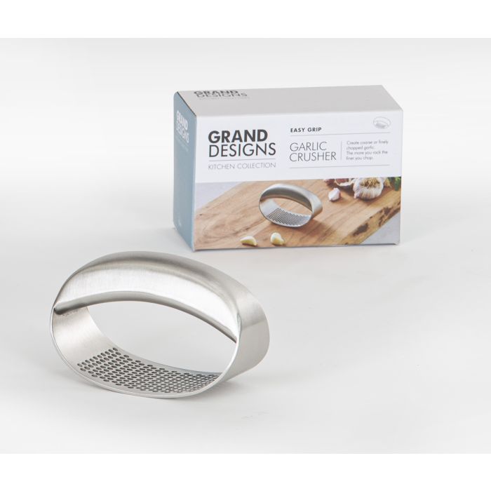 This Grand Designs Garlic Crusher is both stylish and practical. Made from stainless steel, it’s a statement piece for your kitchen. This cleverly designed tool allows you to finely chop garlic – the more you rock, the more you chop. It’s an easy to use crusher with an ergonomically designed handle to comfortably chop garlic. Elevate your cooking with this Garlic Crusher from Grand Designs.