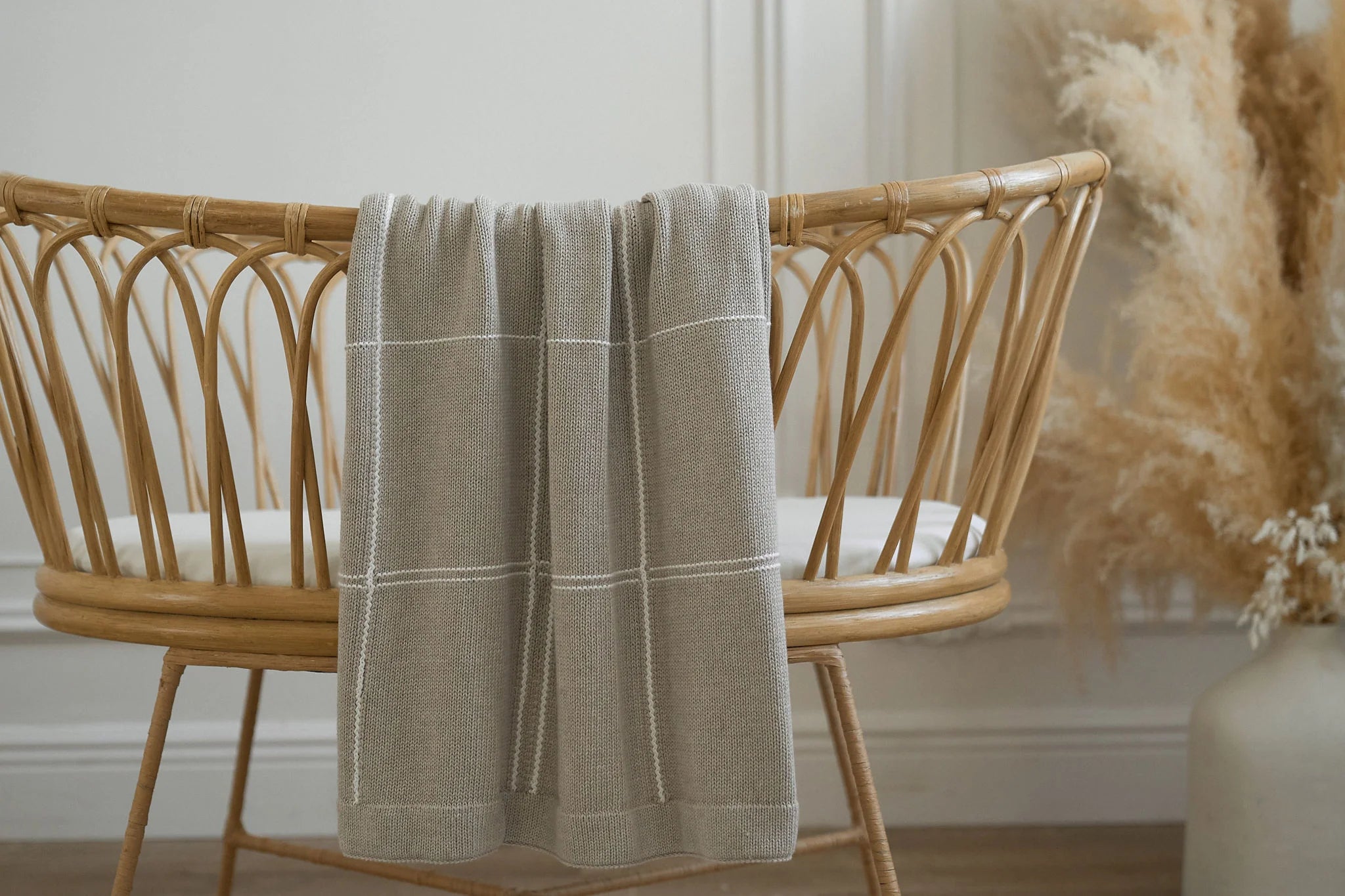 A beautiful soft cotton baby blanket with a classic grid pattern. 100cm x 80cm