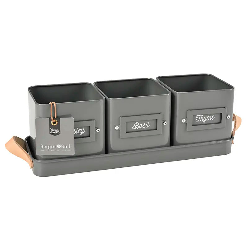 Make the most of your meals with home grown herbs from this set of 3 Burgon & Ball Herb Pots in a Leather Handled Tray. Herbs never taste better than when you have grown them yourself and this set allows you to grow in style, without sacrificing practicality.