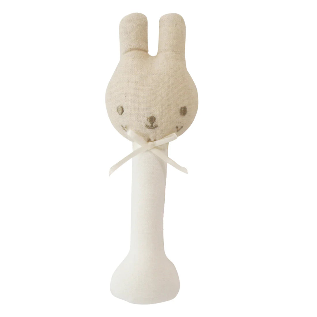 Alimrose Linen Bunny Stick Rattle – A Sweet & Safe First Rattle for Baby! 🐰✨