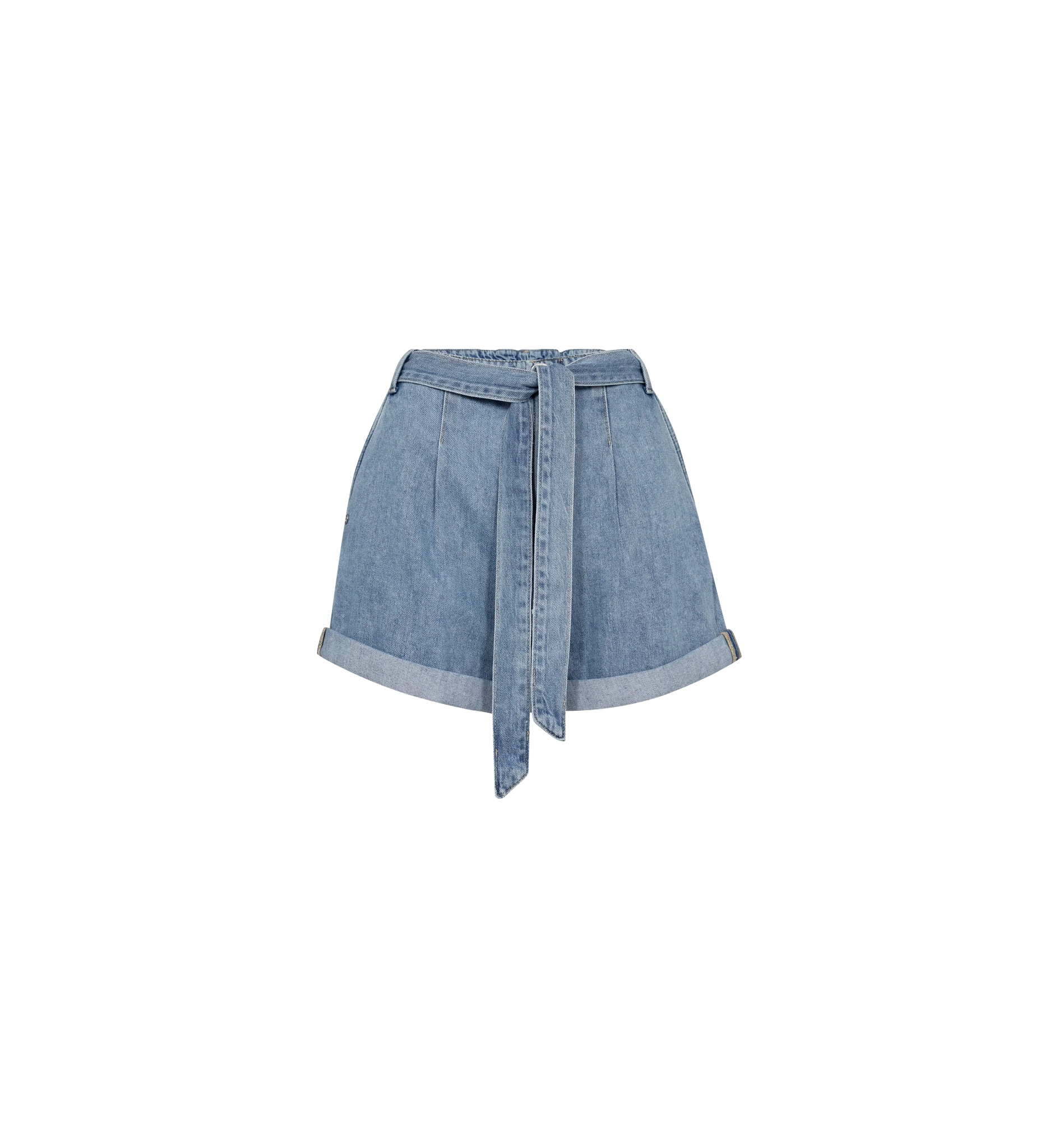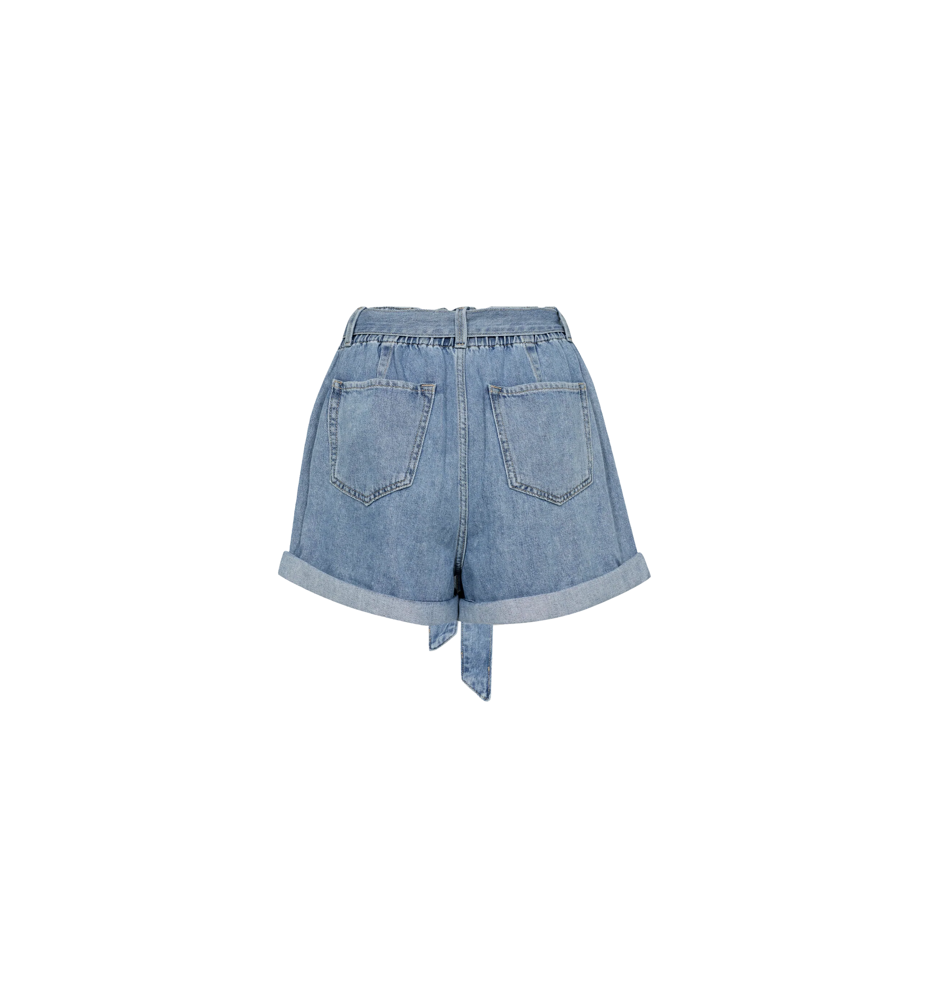 These stylish denim shorts are a summer staple, designed to combine comfort with a touch of elegance. Featuring a flattering paper bag silhouette and a chic high-rise fit, they are detailed with soft pleats at the front and an elasticated waistband at the back for a relaxed yet tailored feel. The matching denim belt cinches the waist beautifully, enhancing the silhouette with a polished touch. Perfect for creating a fashion-forward ensemble, pair them with the coordinating denim shirt for a cool, cohesive look that exudes effortless style.
