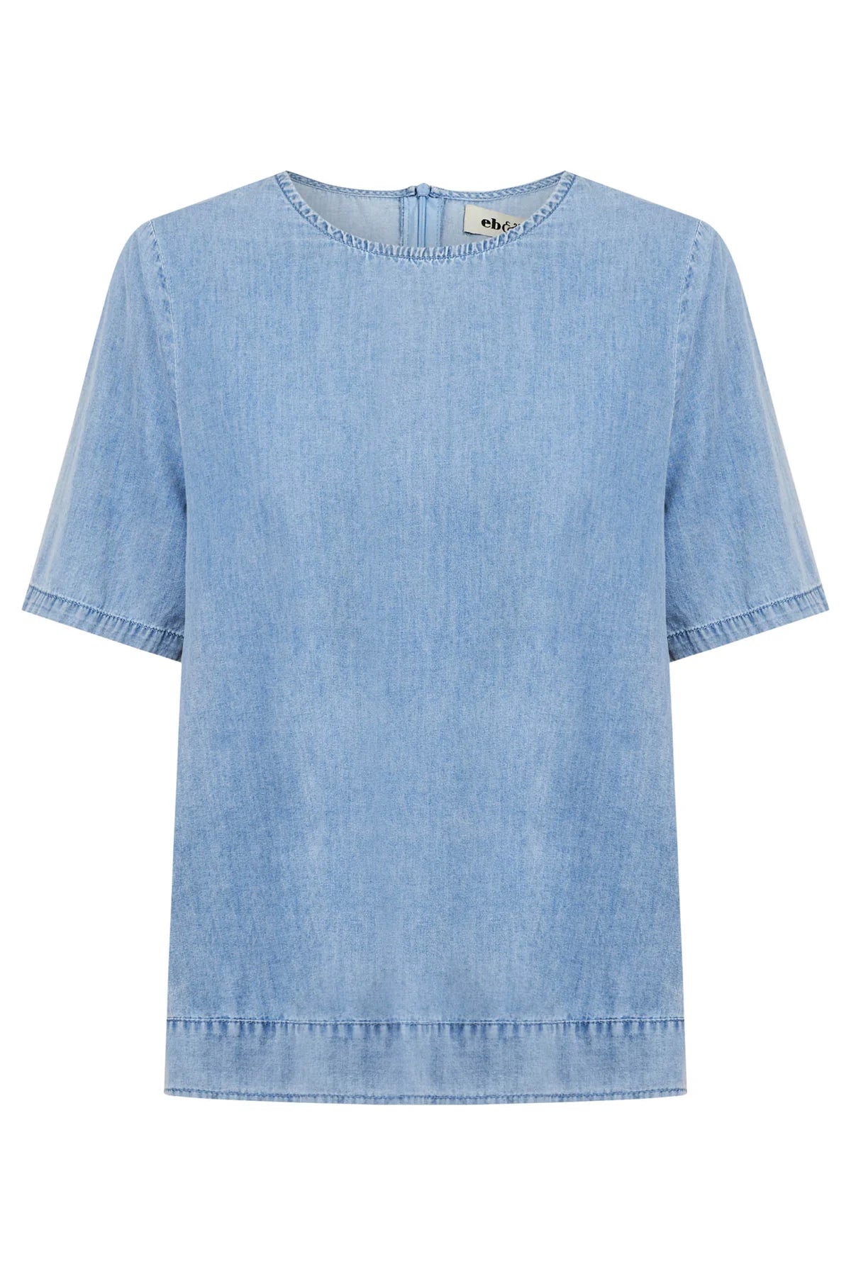 A beautifully soft and lightweight chambray top. Crafted from 100% cotton to have an effortless denim look. This is a t-shirt style silhouette with a wide hem detail and button closure at back of neck.