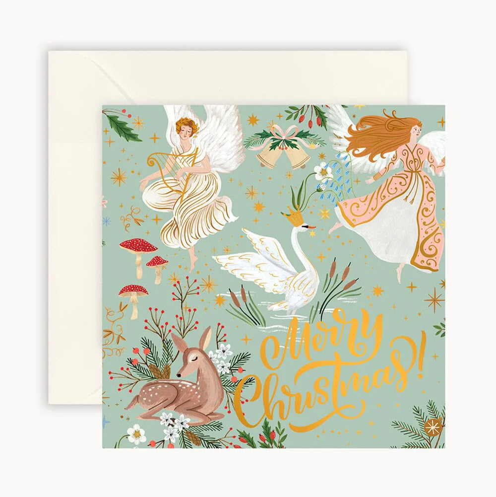 Letterpress hot foil printed small card "Merry Christmas Angels".