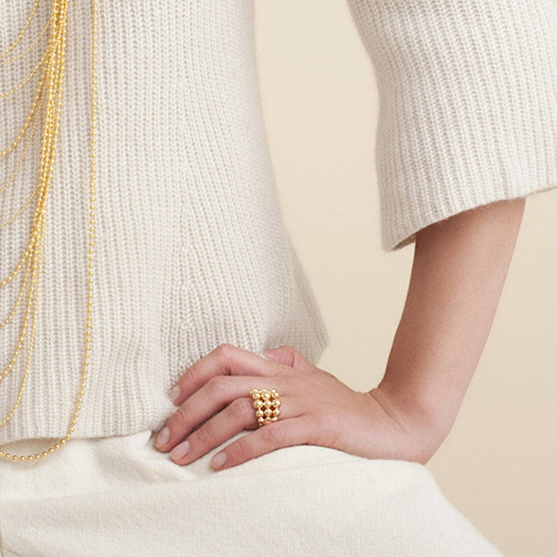 Gold plated ring composed of multiple pearls. Adjustable size.