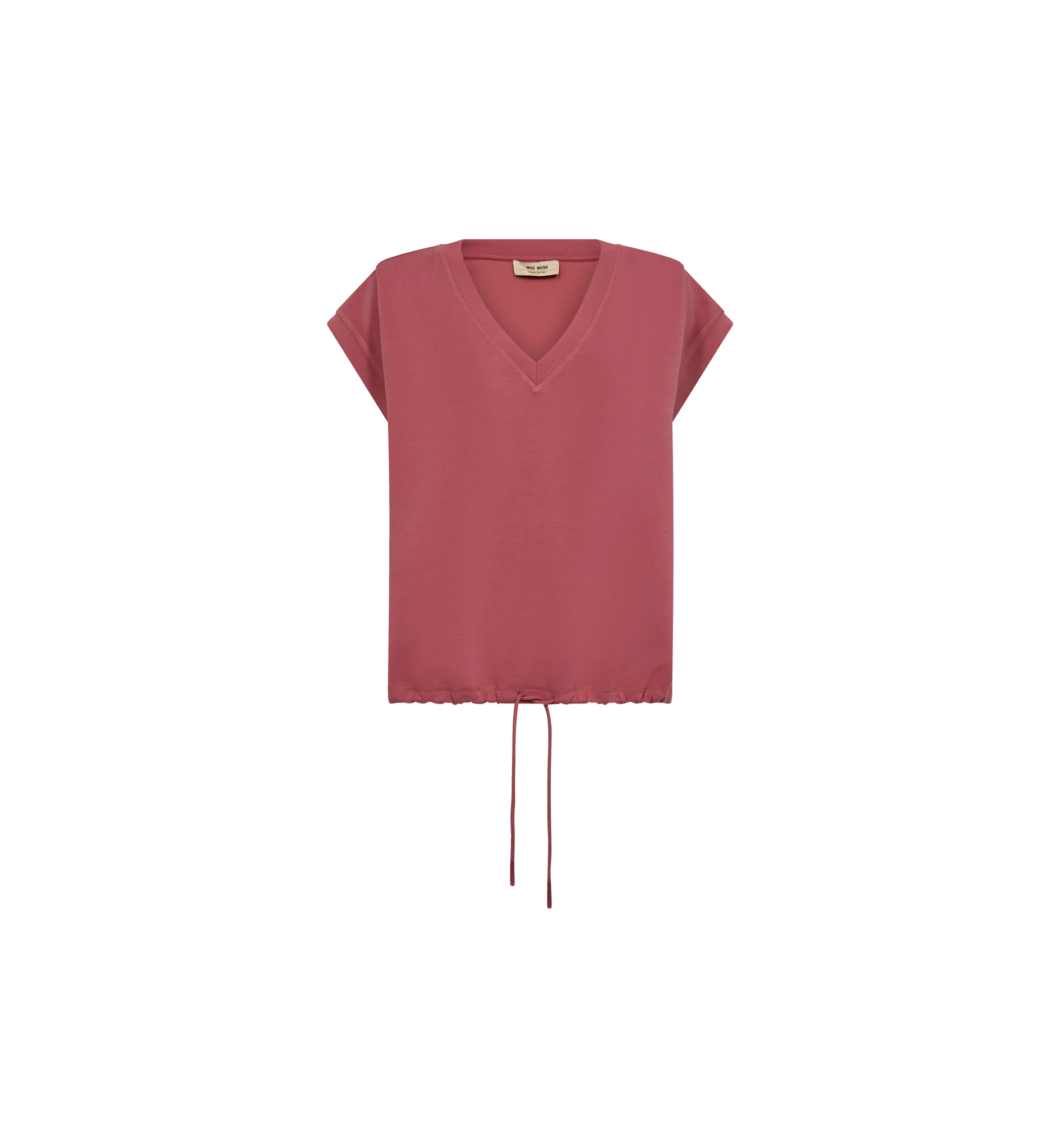 This short-sleeve sweatshirt embodies casual chic with its relaxed and effortlessly cool design. The V-neckline adds a touch of sophistication, while the visible stitch detailing enhances its understated charm. Designed in a loose silhouette, it features a drawstring hem that allows for a customizable fit, blending comfort with style. Perfect for laid-back summer days, it pairs seamlessly with the matching shorts for a coordinated look or with light blue denim for a fresh, modern outfit.