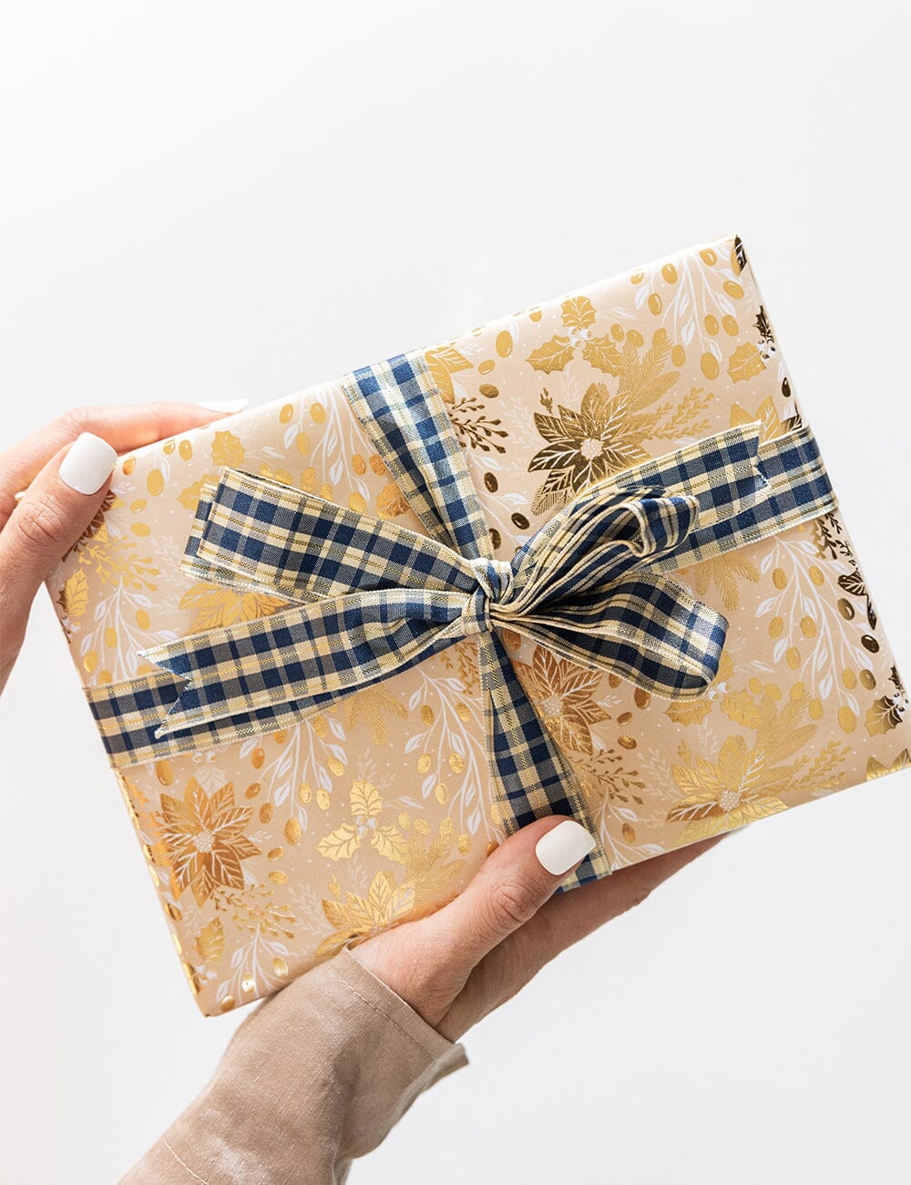 Navy and Gold Foil Tartan Ribbon 10 Meters.