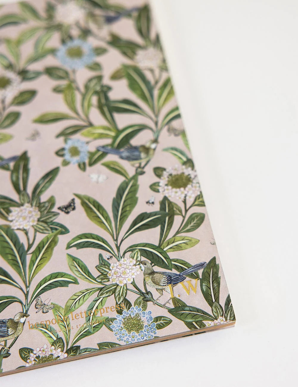 Lined Notebook with hot foil detail to cover, gold gilded edges and forty eight lined heavyweight writing pages.