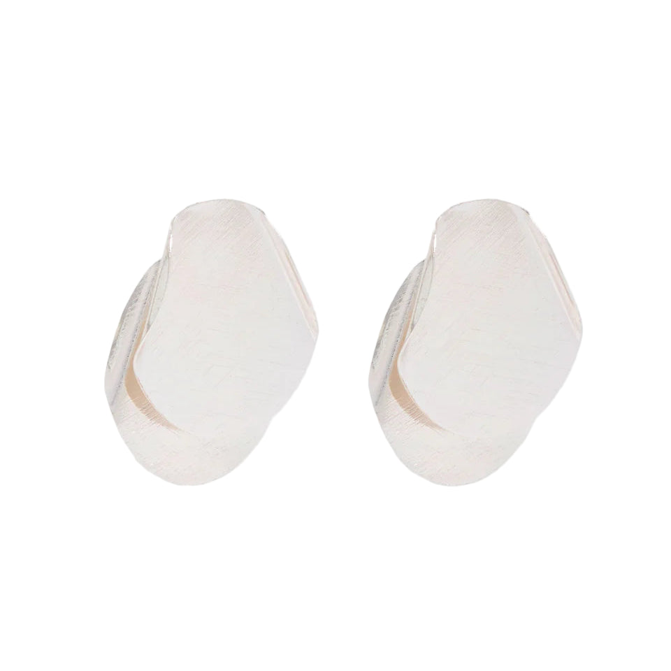 The Villt Earrings are a unique sculptural design of two petal-like shapes crafted from thin, shiny metal with a cross hash brushed finish. Comprised of two components that sit at the front and back of the ear, attached via the stud post back. This distinctive, striking design is perfect for dressing up a simple office outfit or elevating an evening look.
